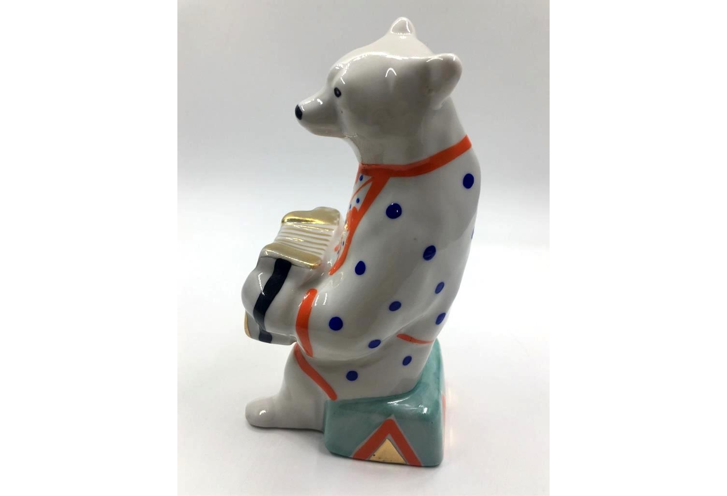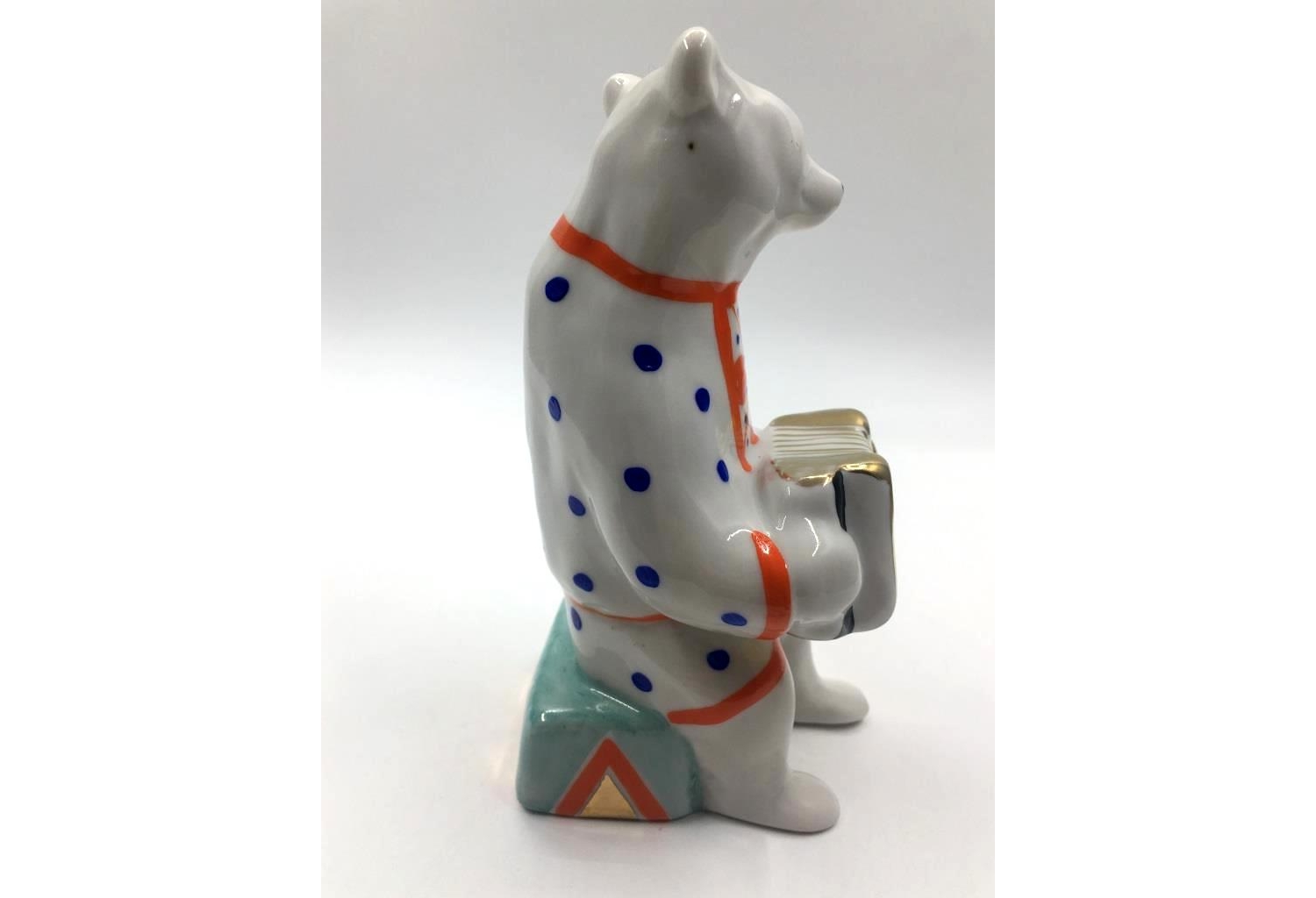 Фарфоровая статуэтка "Цирковой медведь с гармошкой" СССР Дулевский фарфоровый завод 1970-е гг
