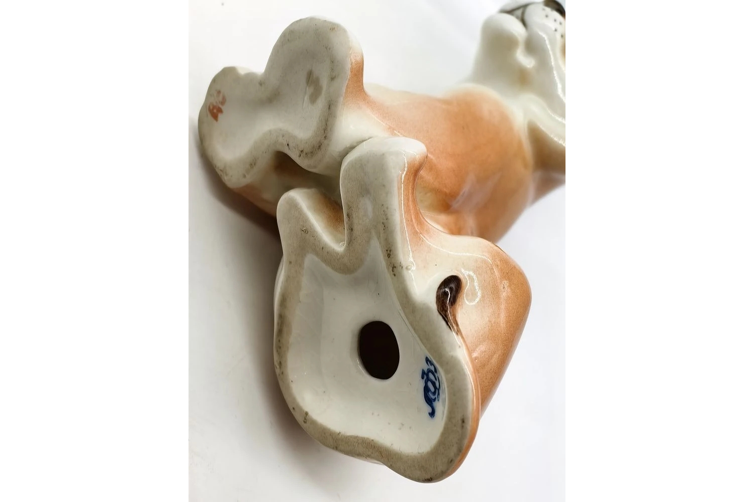 Изделие выполнено из фарфора с художественной росписью. Для декорирования применялись техники подглазурной и надглазурной росписи, что позволило добиться глубины цвета и долговечности покрытия. Поверхность покрыта прозрачной глянцевой глазурью, придающей фигурке благородный блеск.