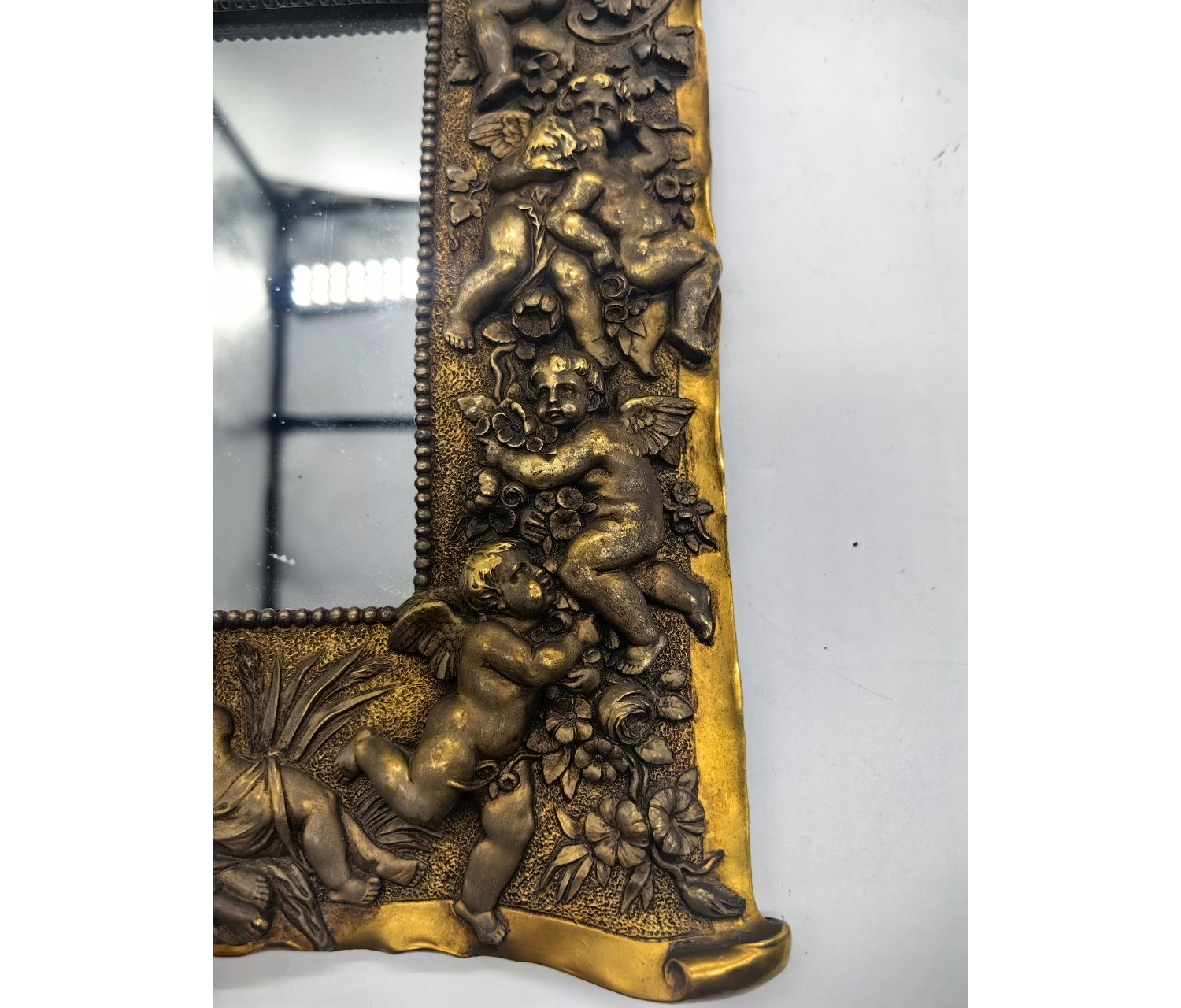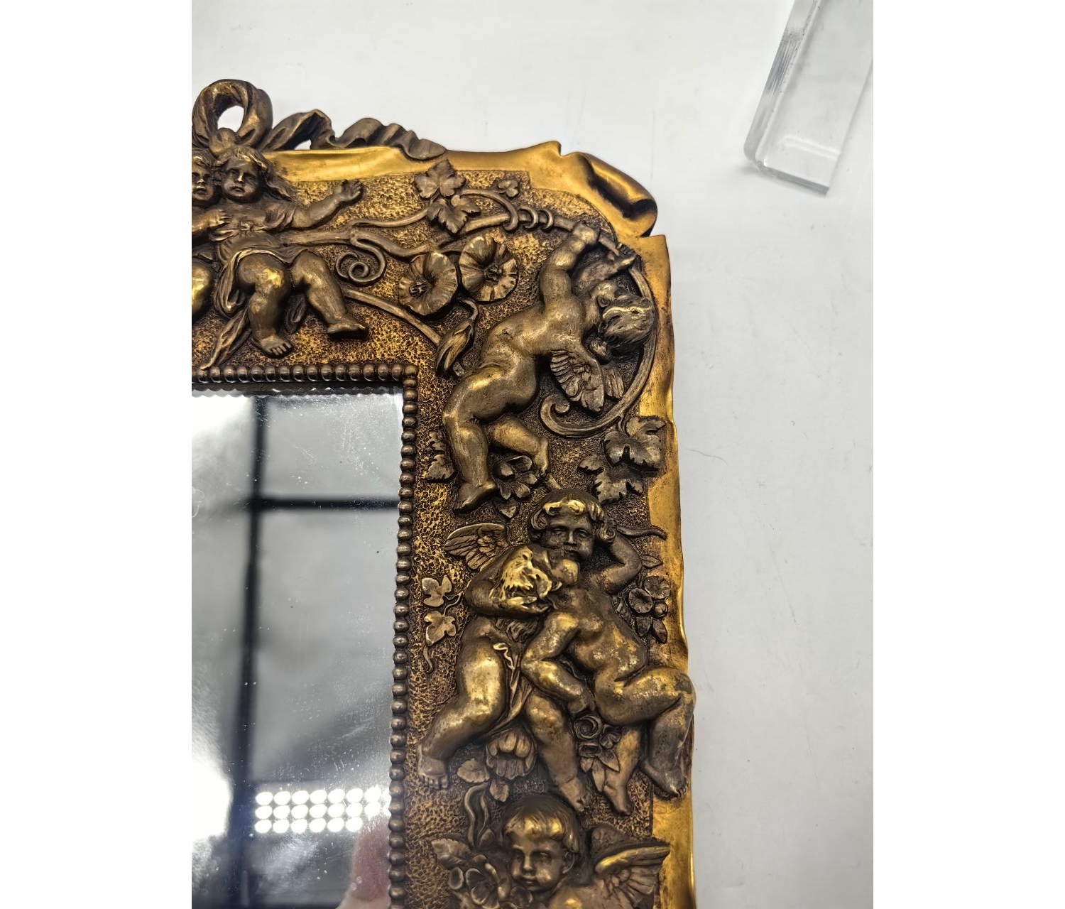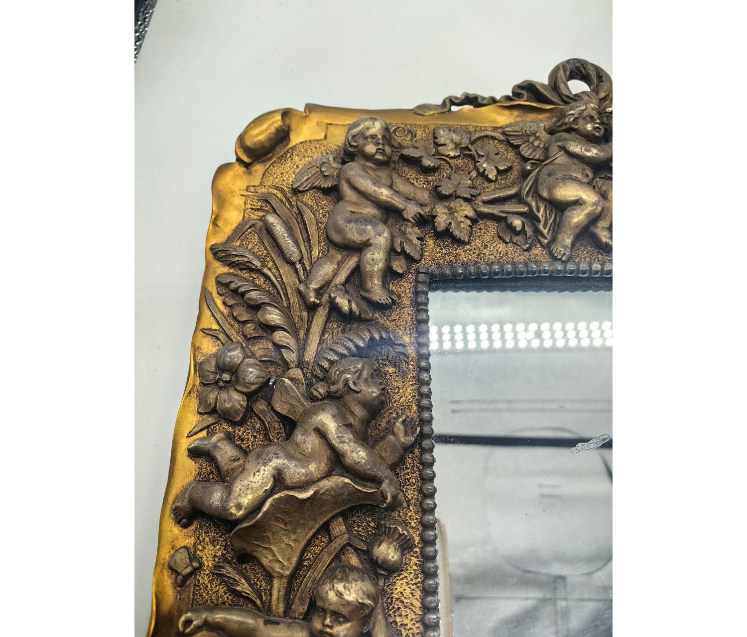 Декор. Рельефные изображения ангелочков могли располагаться по краям рамки, в углах или в центре. Иногда ангелы сочетались с цветочными мотивами, завитками или другими орнаментами.