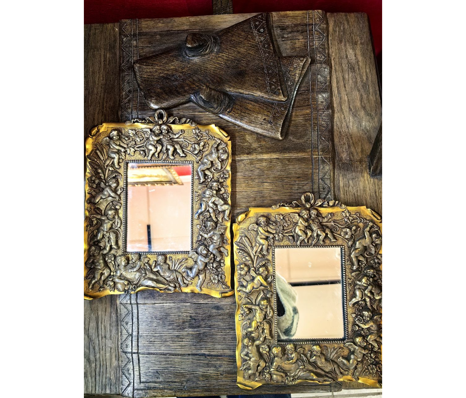 Парные бронзовые рамки для фотографий или зеркал.