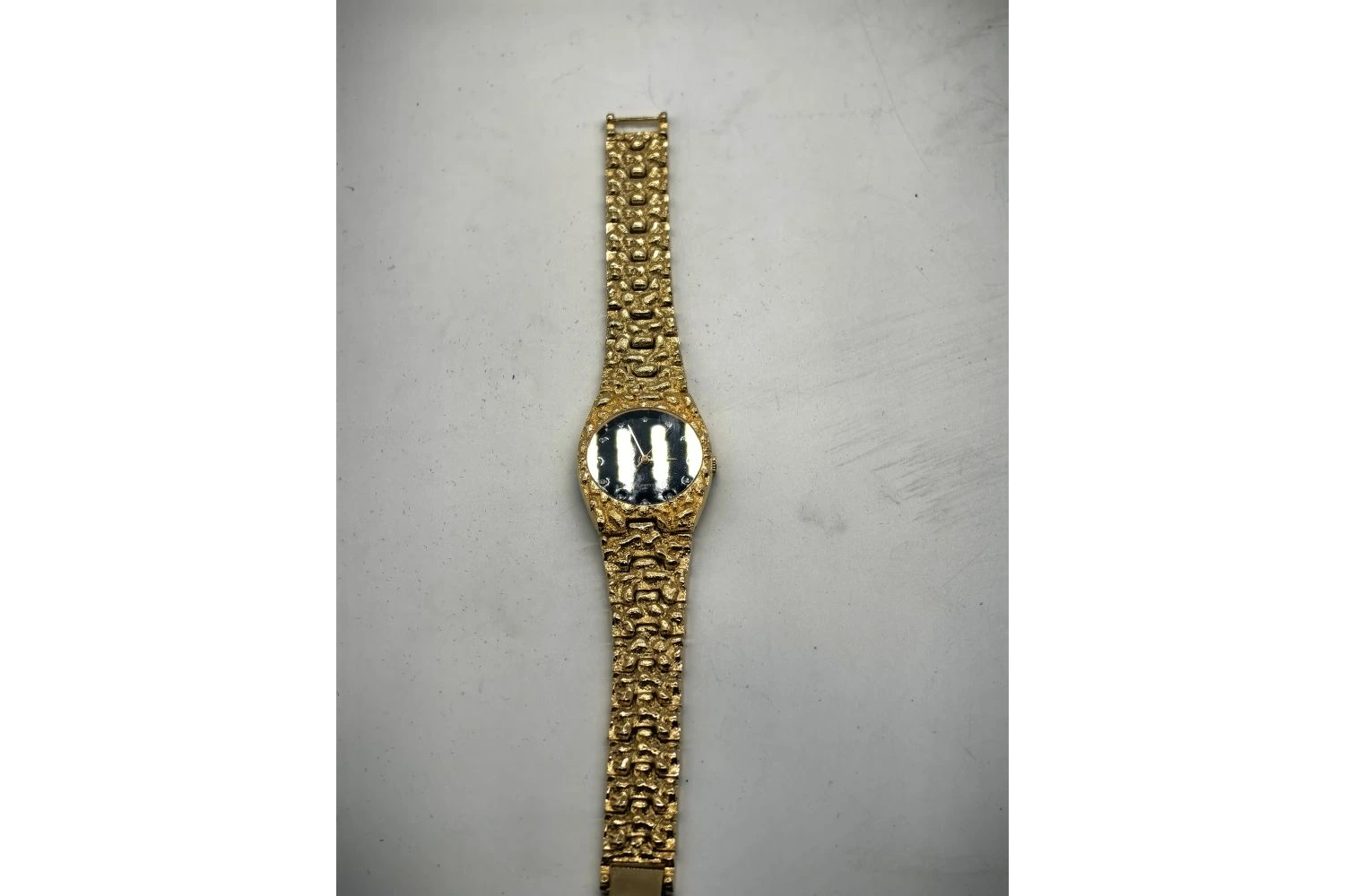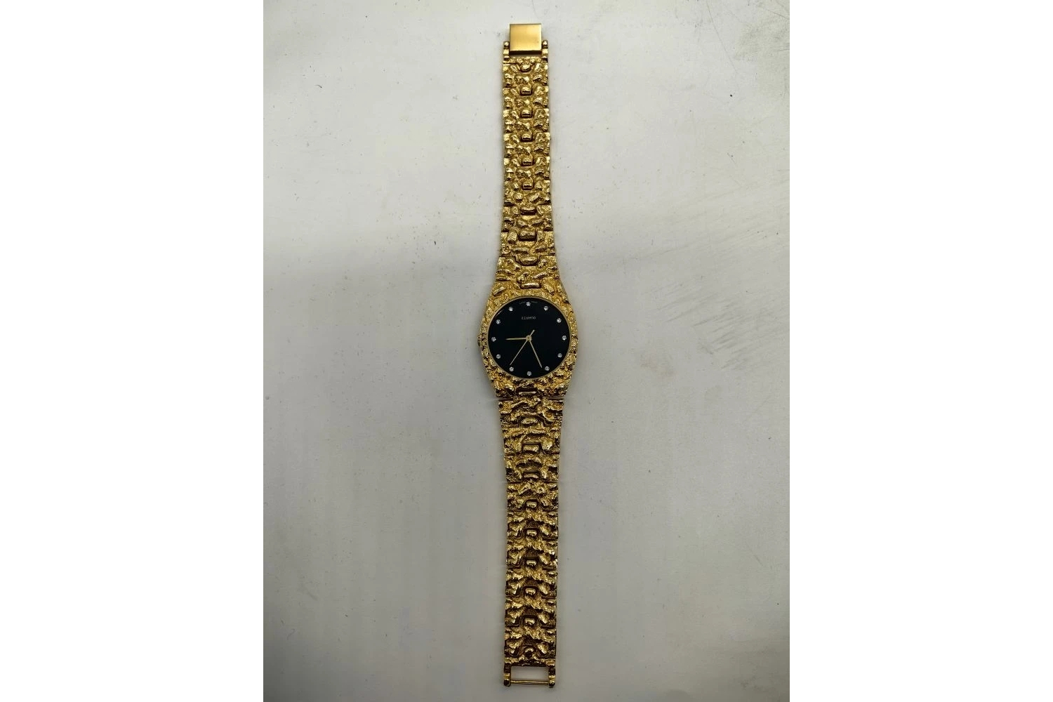 Материалы. Корпус часто изготавливается из нержавеющей стали, латуни или других металлов. Браслет в форме золотых самородков.