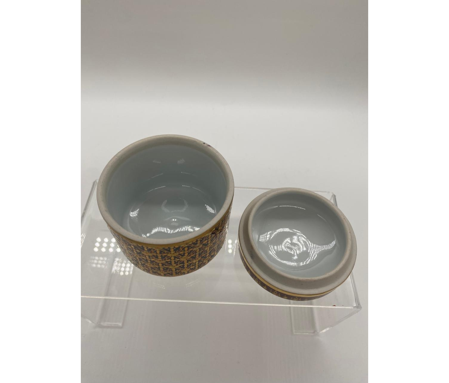 Особого внимания заслуживает красивый рисунок с позолотой, который украшает поверхность банбаниетки. Этот элемент декора придает изделию роскошный и благородный вид, делая его настоящим украшением любого интерьера.