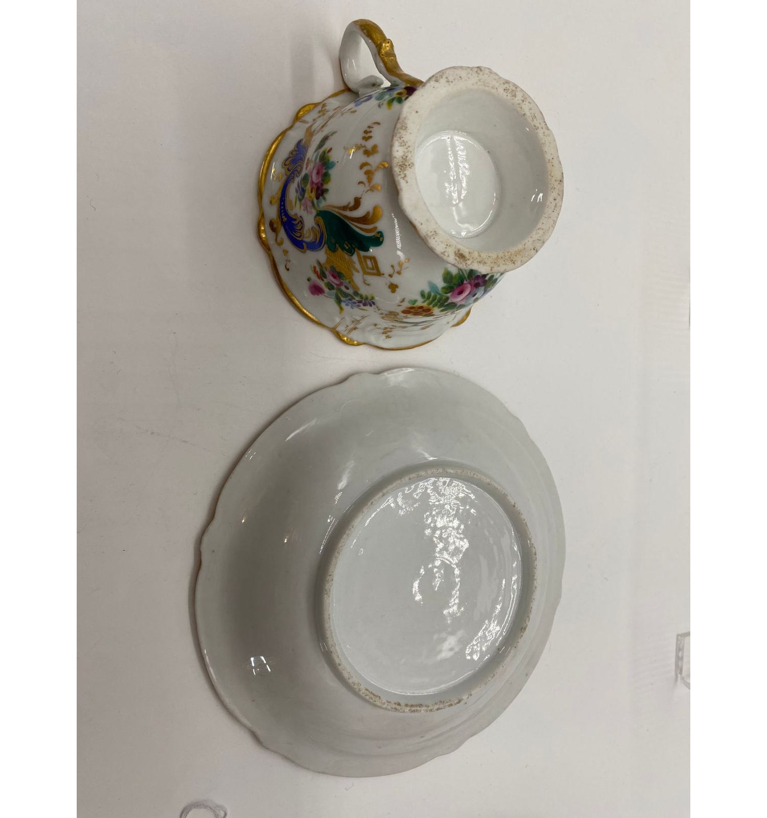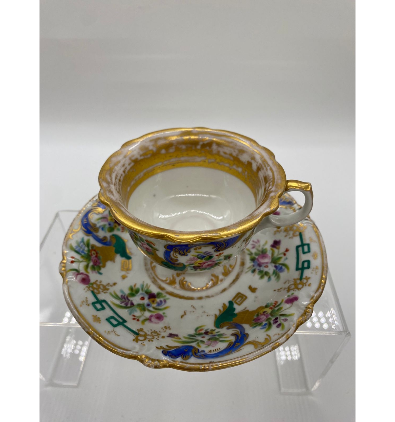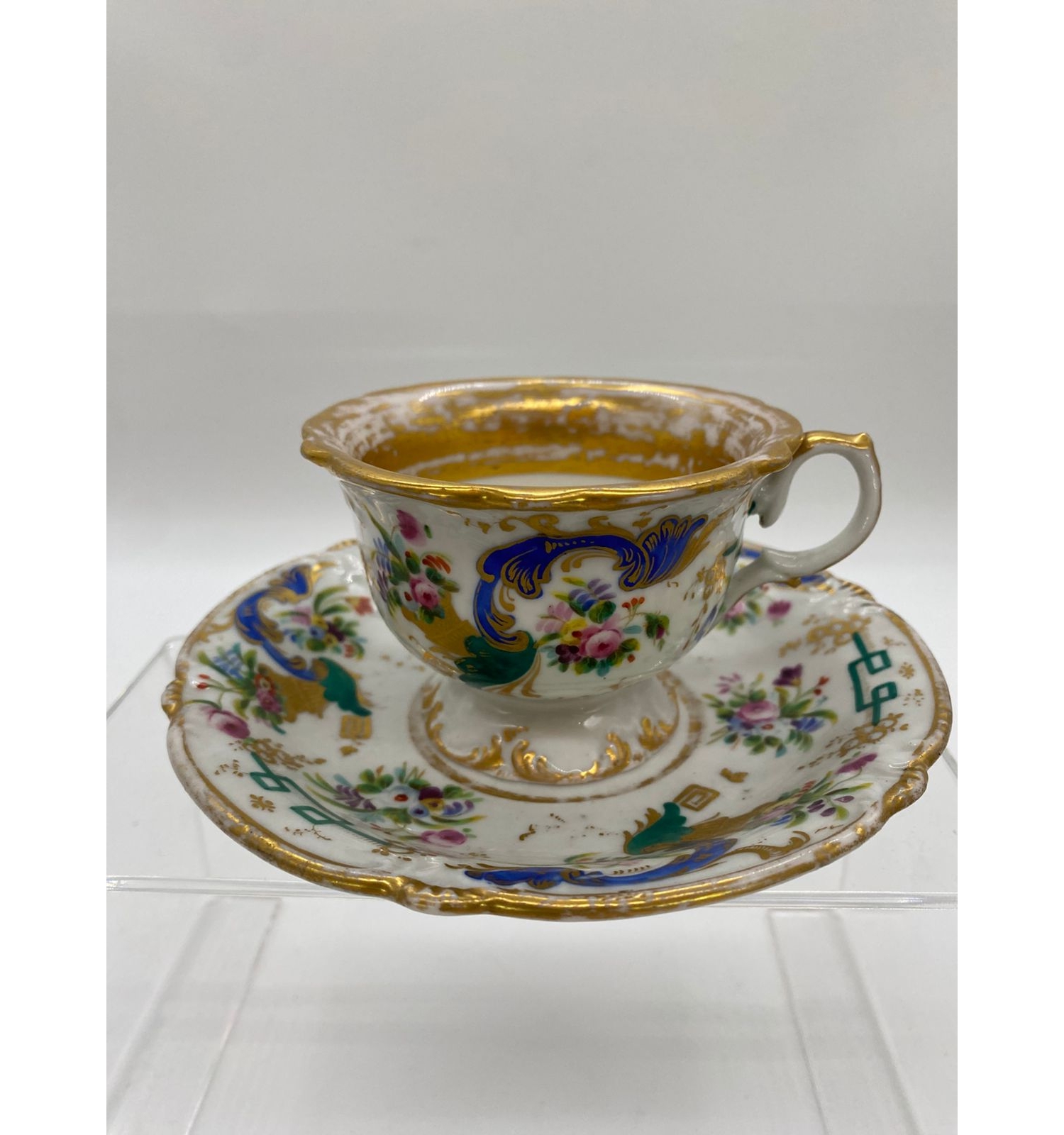 Представляю вашему вниманию изысканную чайную пару из Франции, датированную XIX веком. Это произведение искусства выполнено на знаменитом фарфоровом заводе Севр, что делает его особенно ценным и желанным для коллекционеров. Диаметр чашки составляет 9,5 см.