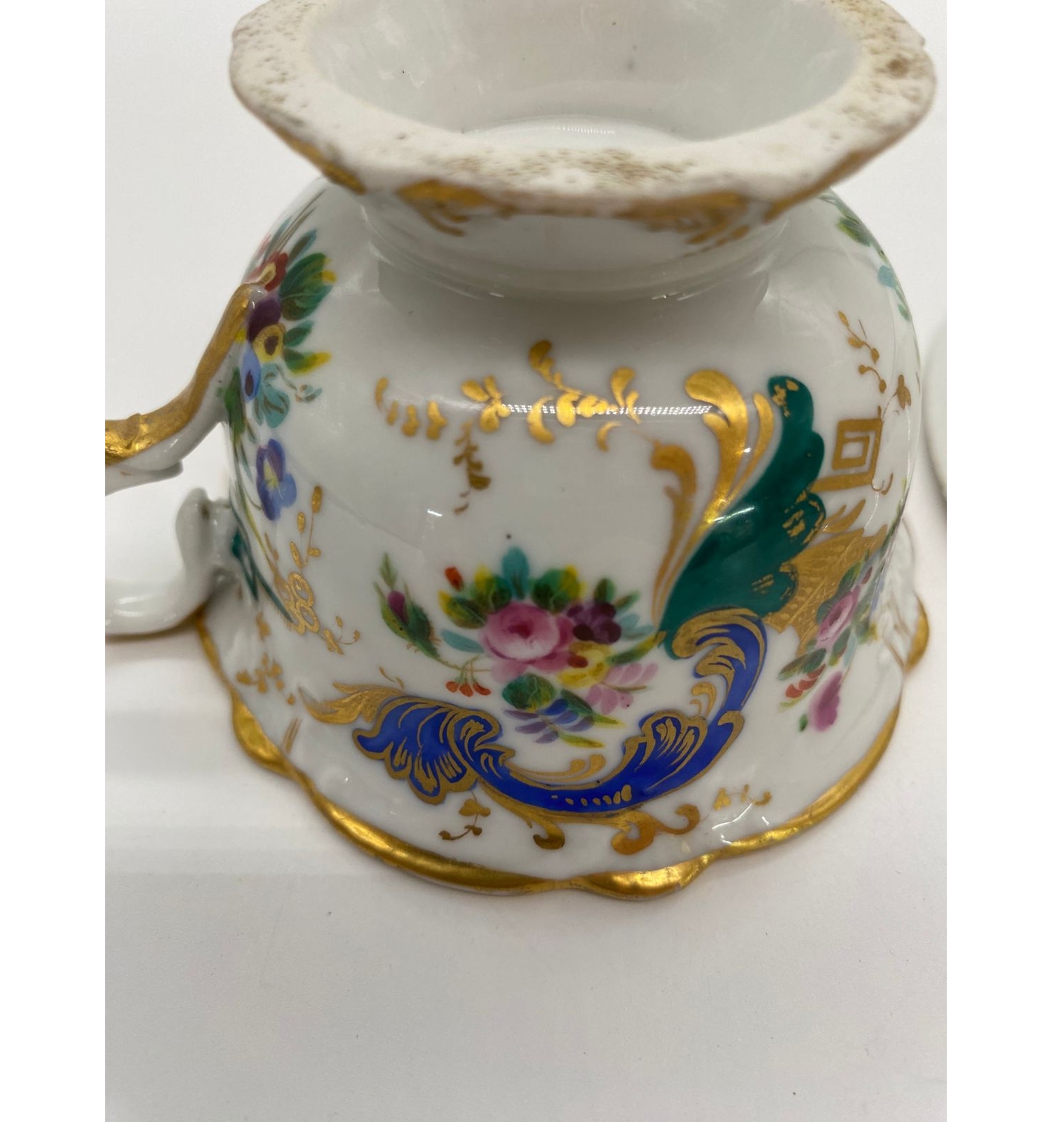 Дизайн чайной пары отличается утонченностью и элегантностью, характерными для французского фарфора того времени. Севрский фарфор славится своим изысканным стилем и высоким качеством, что делает эту чайную пару не только функциональным предметом, но и настоящим произведением искусства.