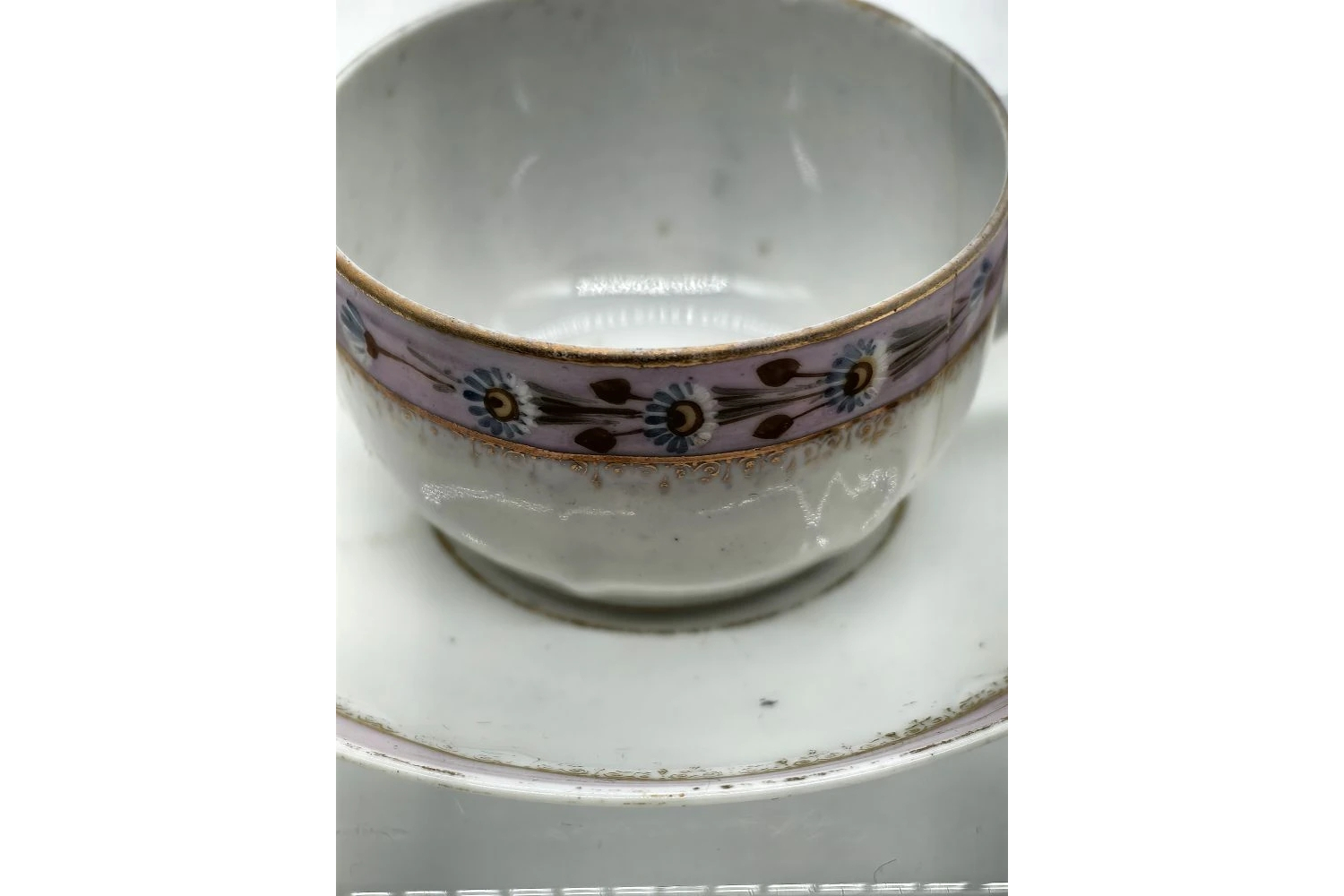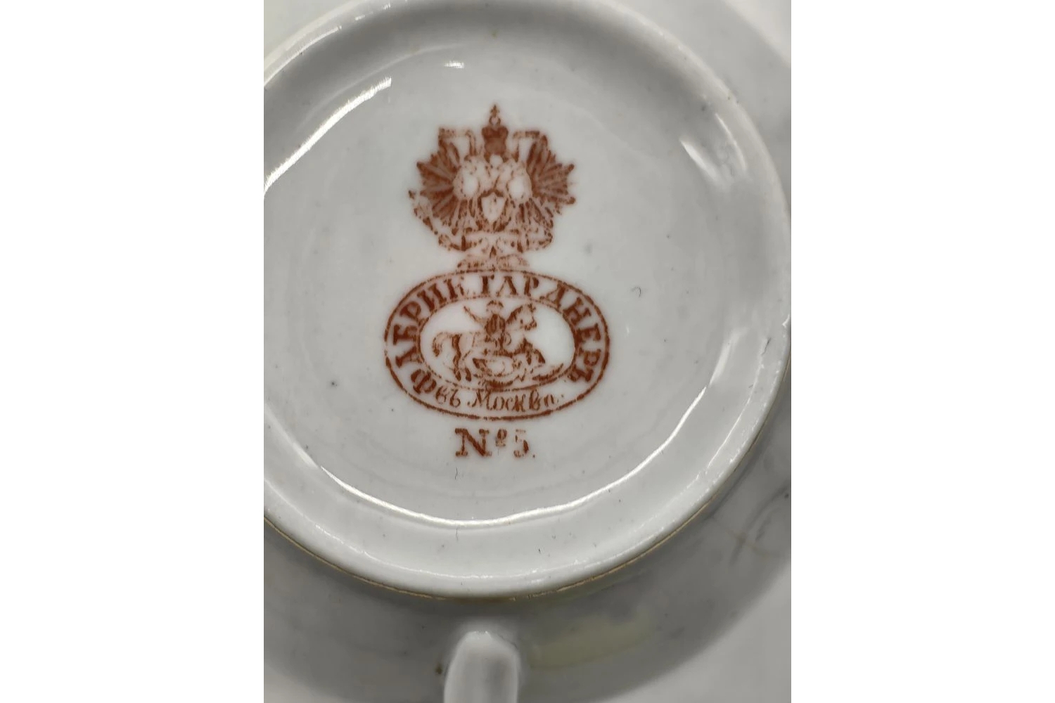 Изящная чайная пара производства фабрики Гарднер — образец классического русского фарфорового искусства. Изделие сочетает утончённый дизайн, высокое качество исполнения и узнаваемый стиль мануфактуры, известной с XVIII века.