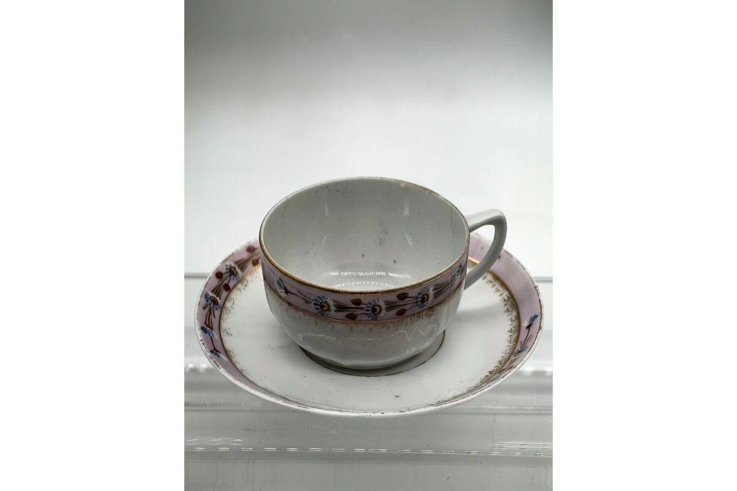 Чайные пары с лаконичным декором (как вариант с розовым ободком) выпускались как для массового потребителя, так и в составе сервизов для аристократических домов. Подобные изделия могли: