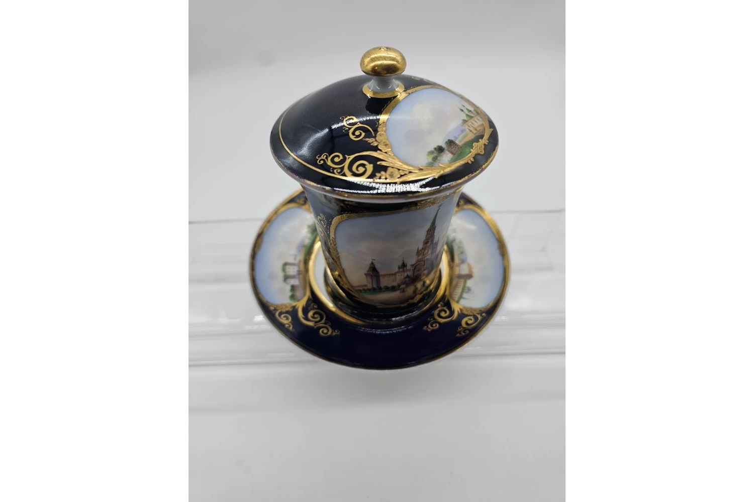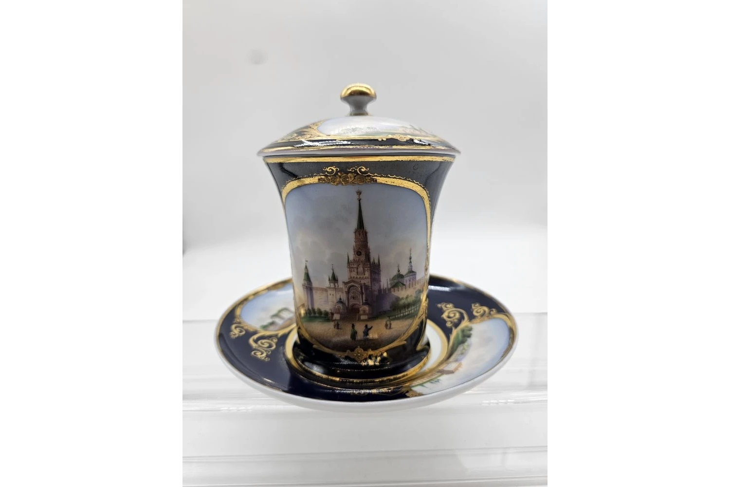 Чайная пара с изображением Кремля производства завода А. Г. Попова