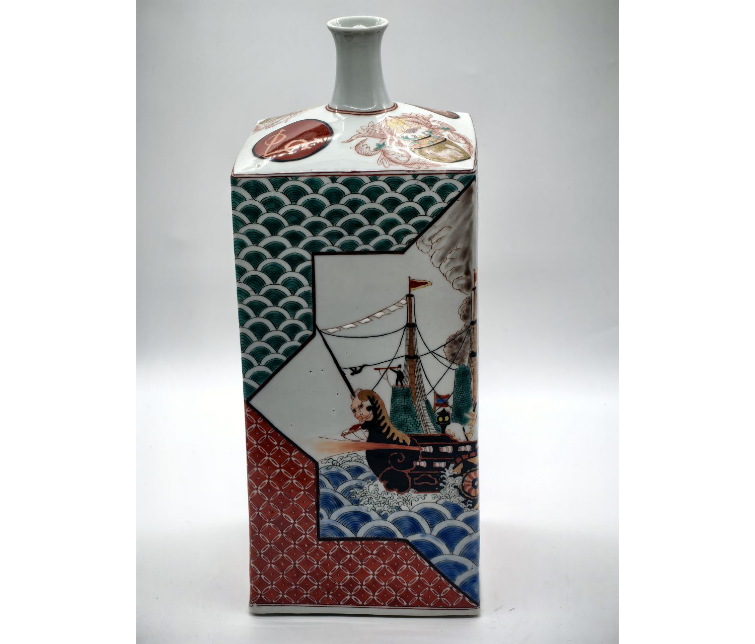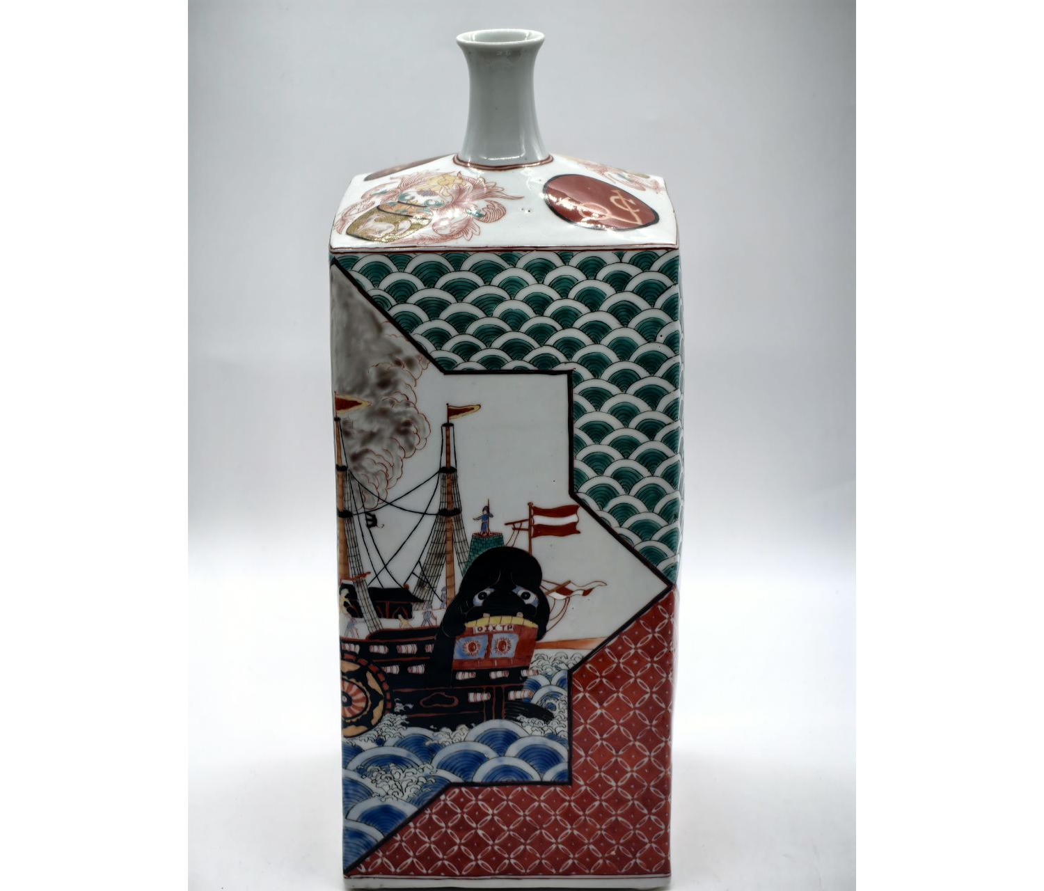 Предмет относится к редкой категории пропагандистского фарфора эпохи Мэйдзи. Такие изделия создавались: