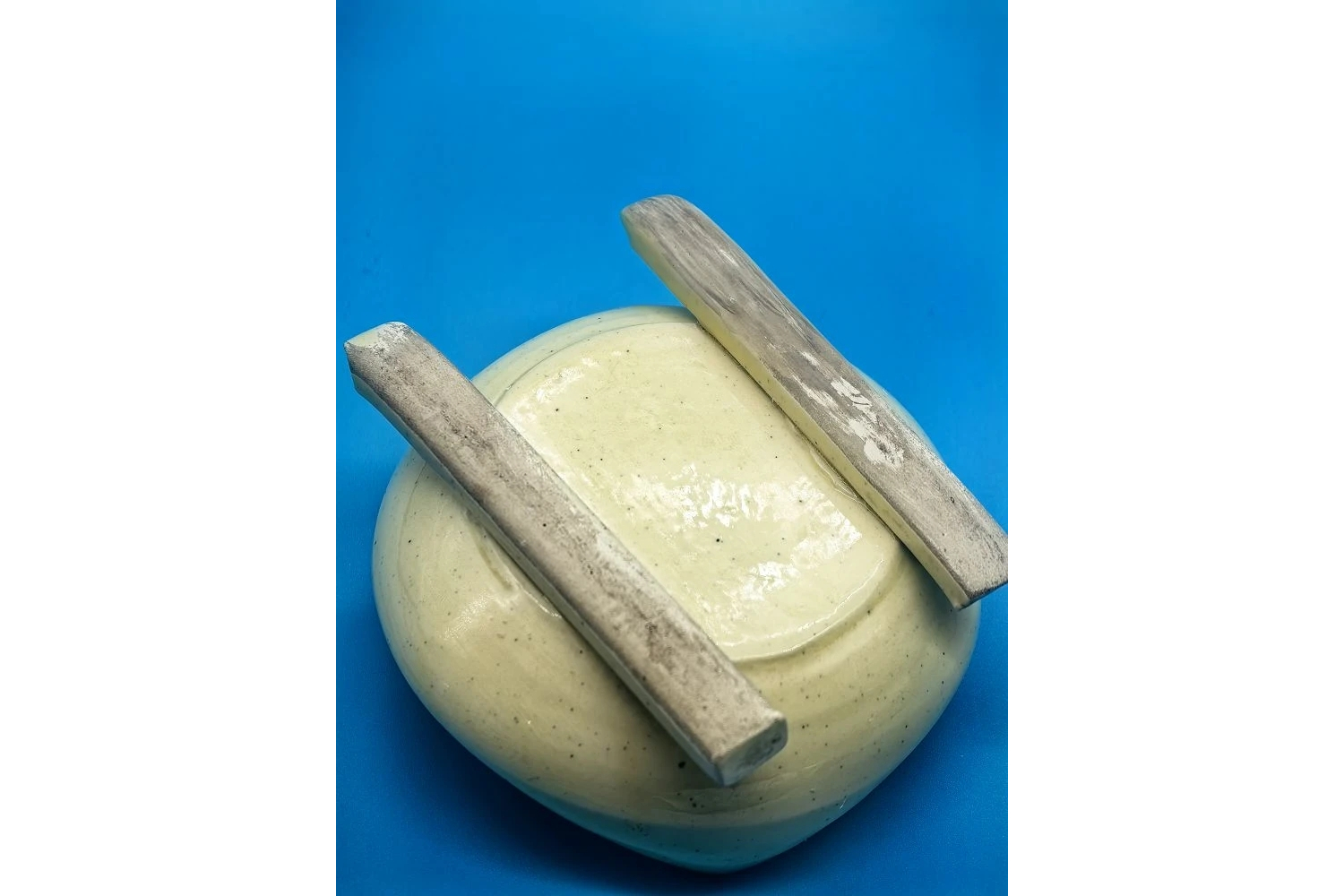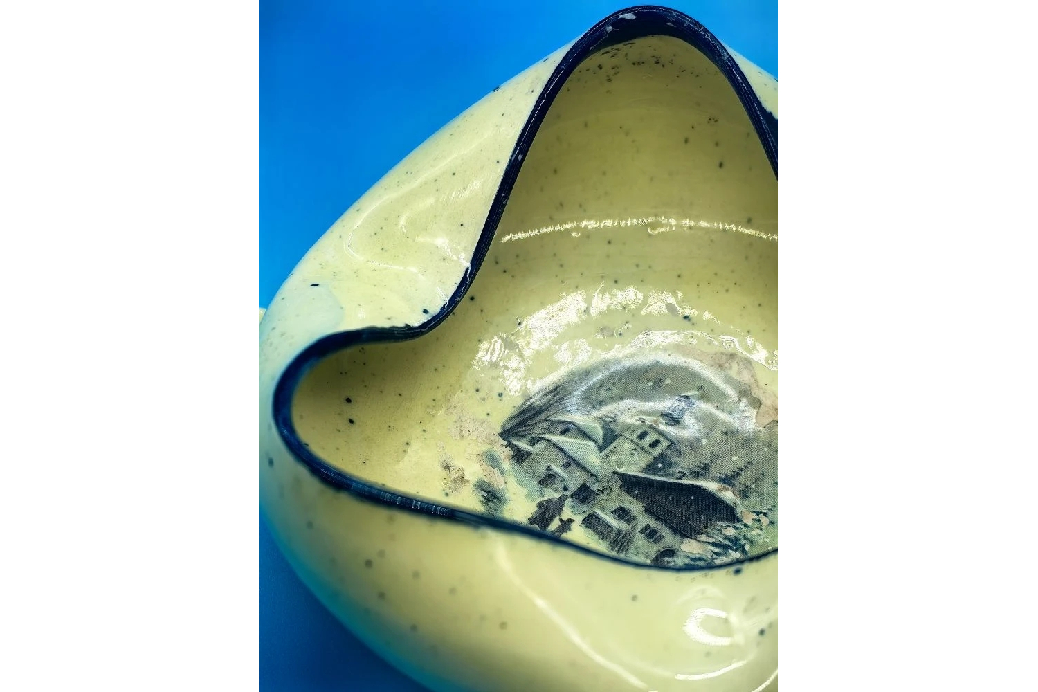 Материал. Тёплый лимонный оттенок может свидетельствовать о применении специальных красителей в стекле или глазури (если основа керамическая). Цвет сохранился насыщенным, без выгорания.