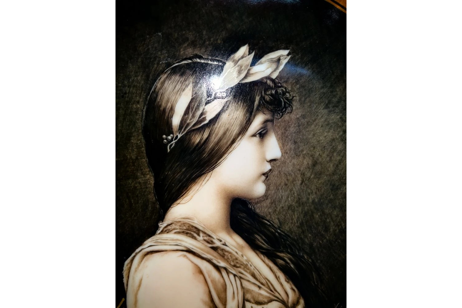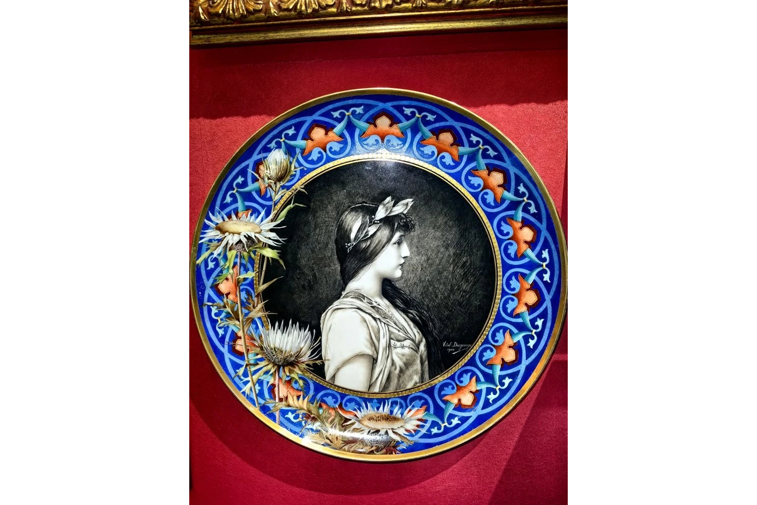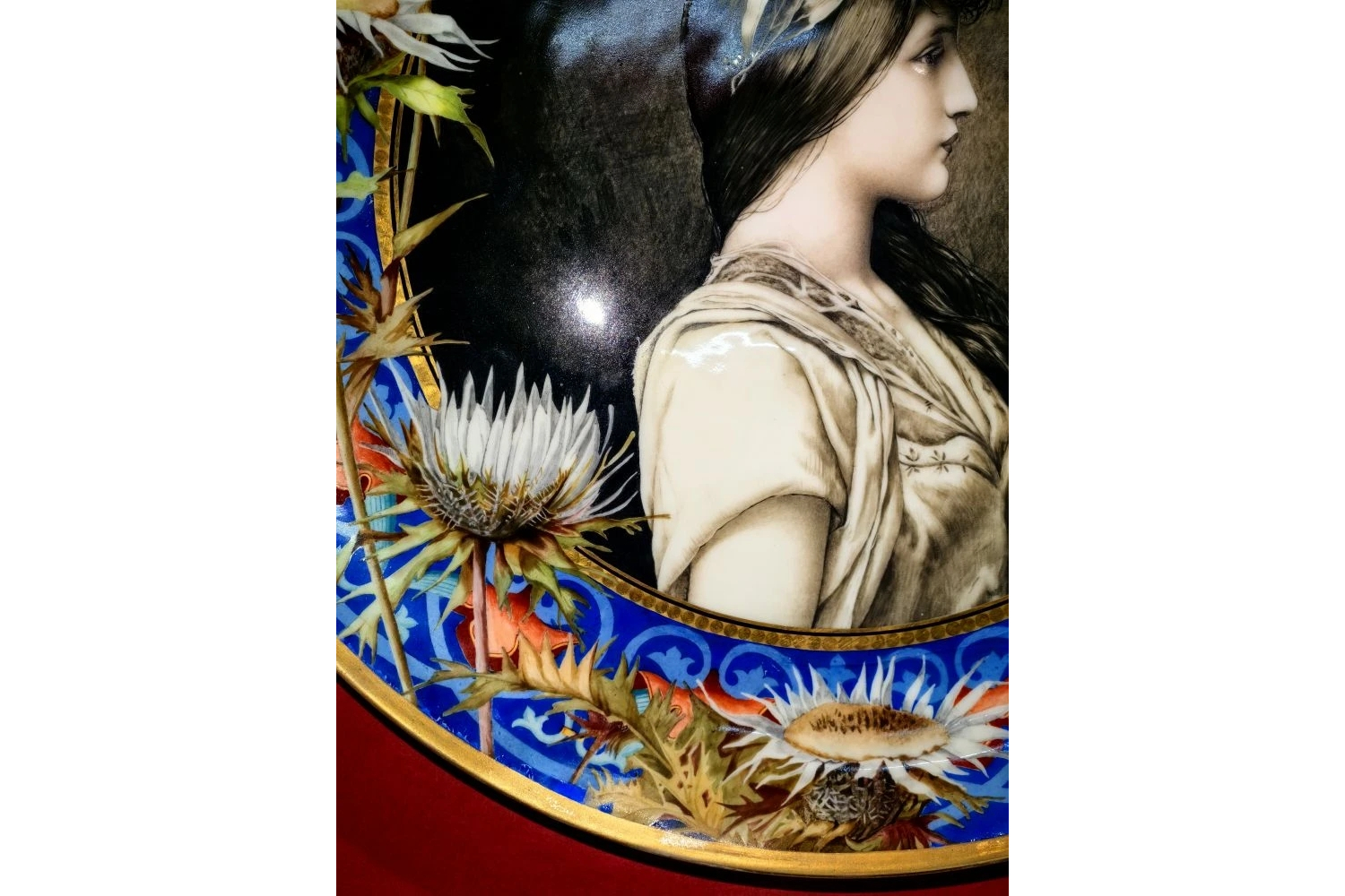 Представляем изысканный образец европейского декоративно‑прикладного искусства рубежа XIX–XX веков — крупную декоративную тарелку мануфактуры «Братья Дежорж» (Flli Desgeorges), созданную в 1900 году.
