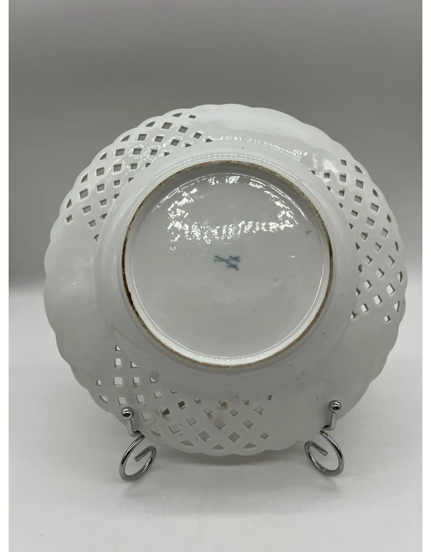 Изящная фарфоровая тарелка из прославленной мануфактуры Мейсен — воплощение классического европейского фарфора и непревзойдённого мастерства саксонских мастеров. Предмет сочетает в себе утончённую эстетику и историческую ценность, характерную для изделий знаменитого производителя.