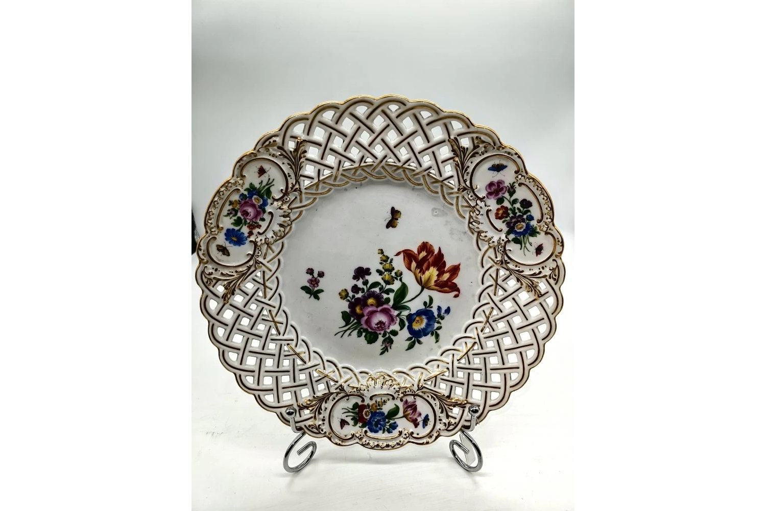 Тарелка выполнена в классическом стиле мейсенского фарфора: