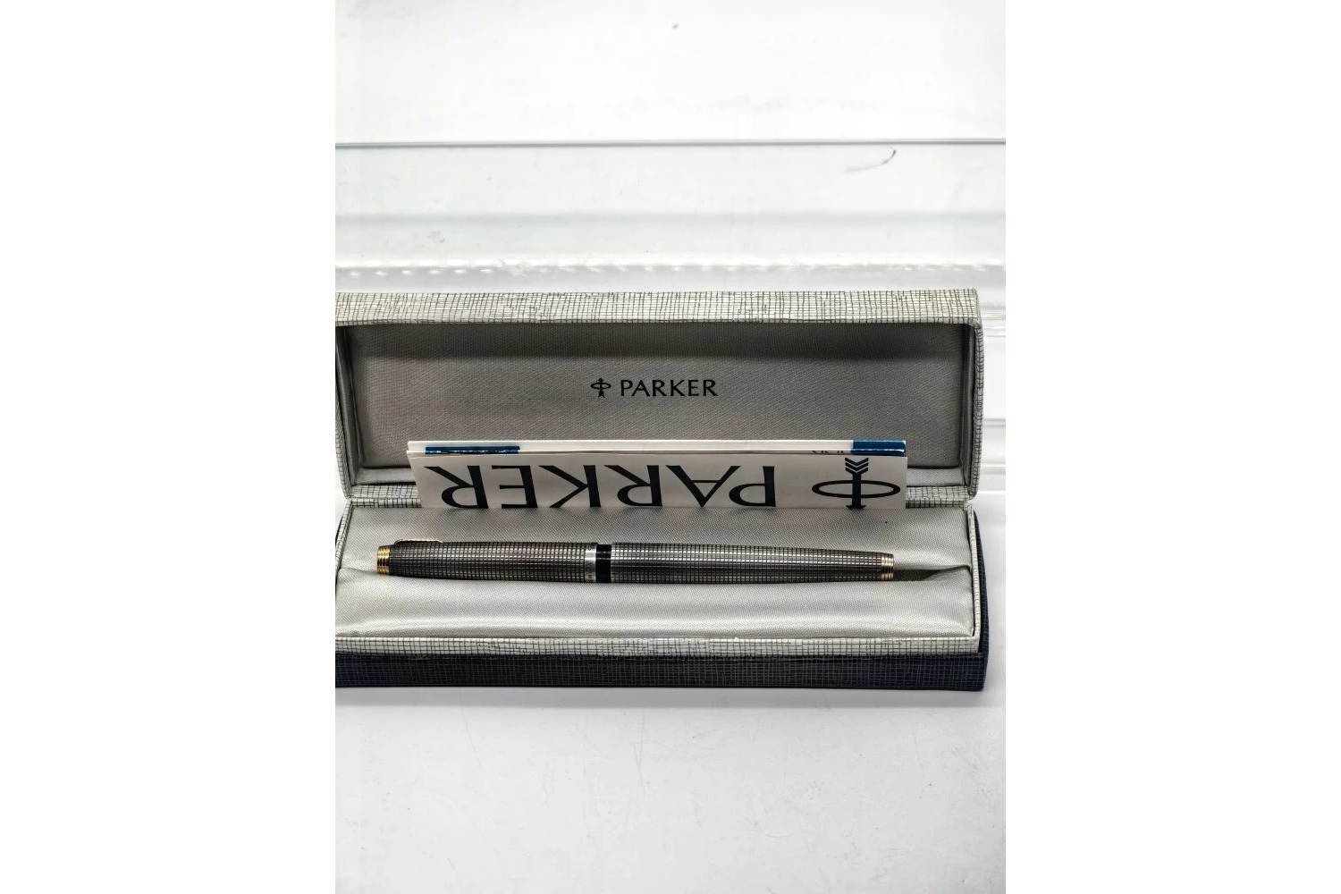 Предлагаю к приобретению подлинный шедевр инженерной мысли и дизайна — серебряную перьевую ручку Parker. Изделие сохранилось в исключительной комплектации: вместе с родной коробкой и полным пакетом документов. Это делает экземпляр особенно ценным для коллекционеров и любителей аутентичных предметов.