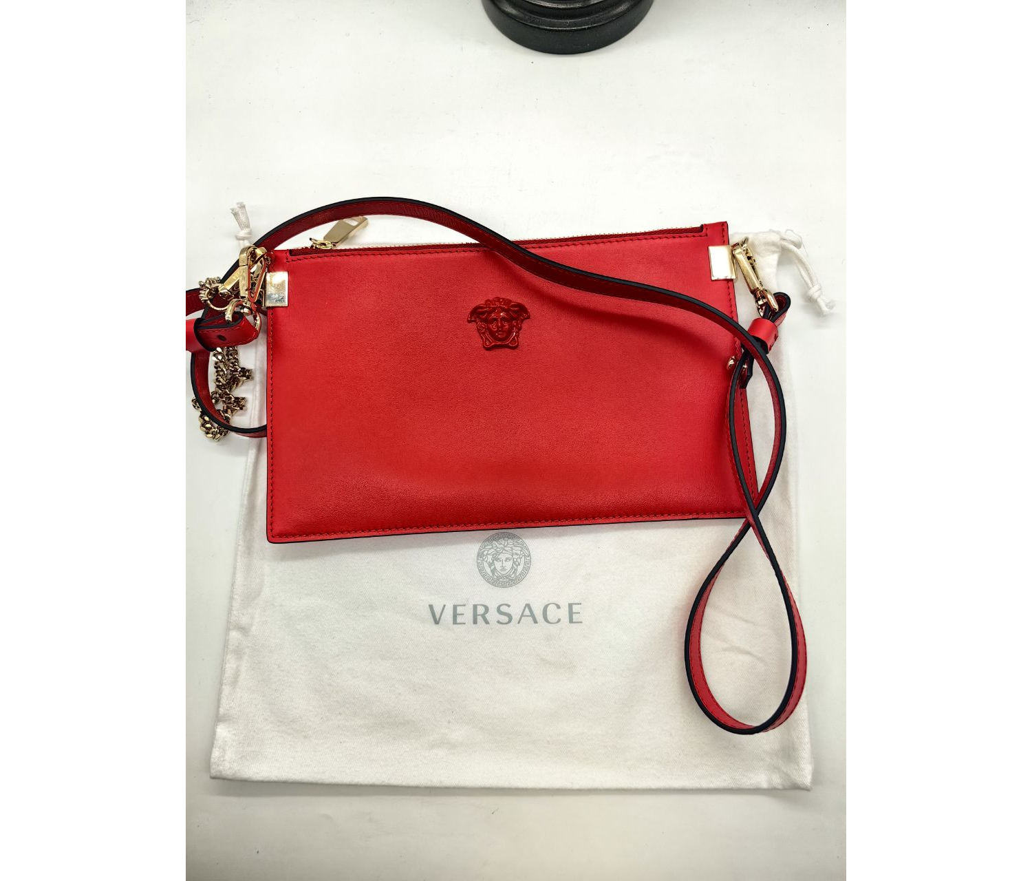 Предлагаю роскошную вечернюю сумку от всемирно известного модного дома Versace. Это подлинное изделие премиум‑класса — идеальный аксессуар для торжественных мероприятий, светских раутов и особых случаев.