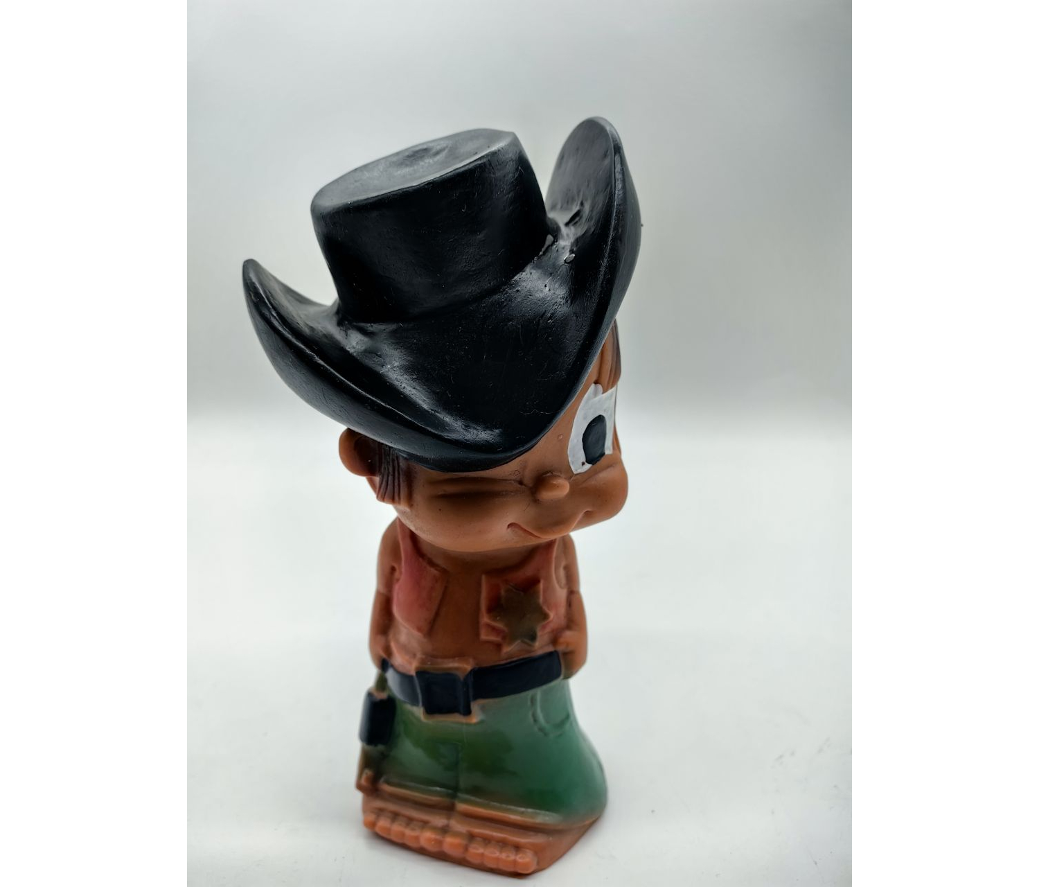 Резиновая игрушка «Ковбой» (иногда называемая «Шериф») производства Югославии высотой 16 см — винтажный предмет, который может представлять интерес для коллекционеров и любителей ретро-игрушек. Такие игрушки часто отличаются характерной стилистикой и качеством материалов, типичными для югославского производства второй половины XX века.