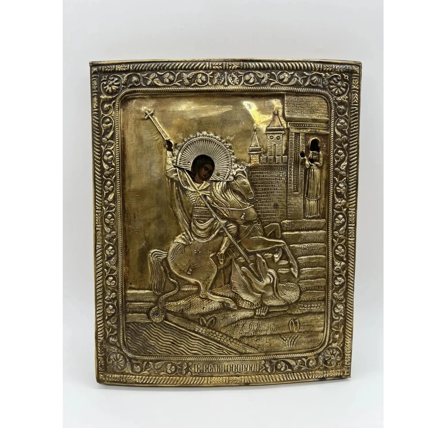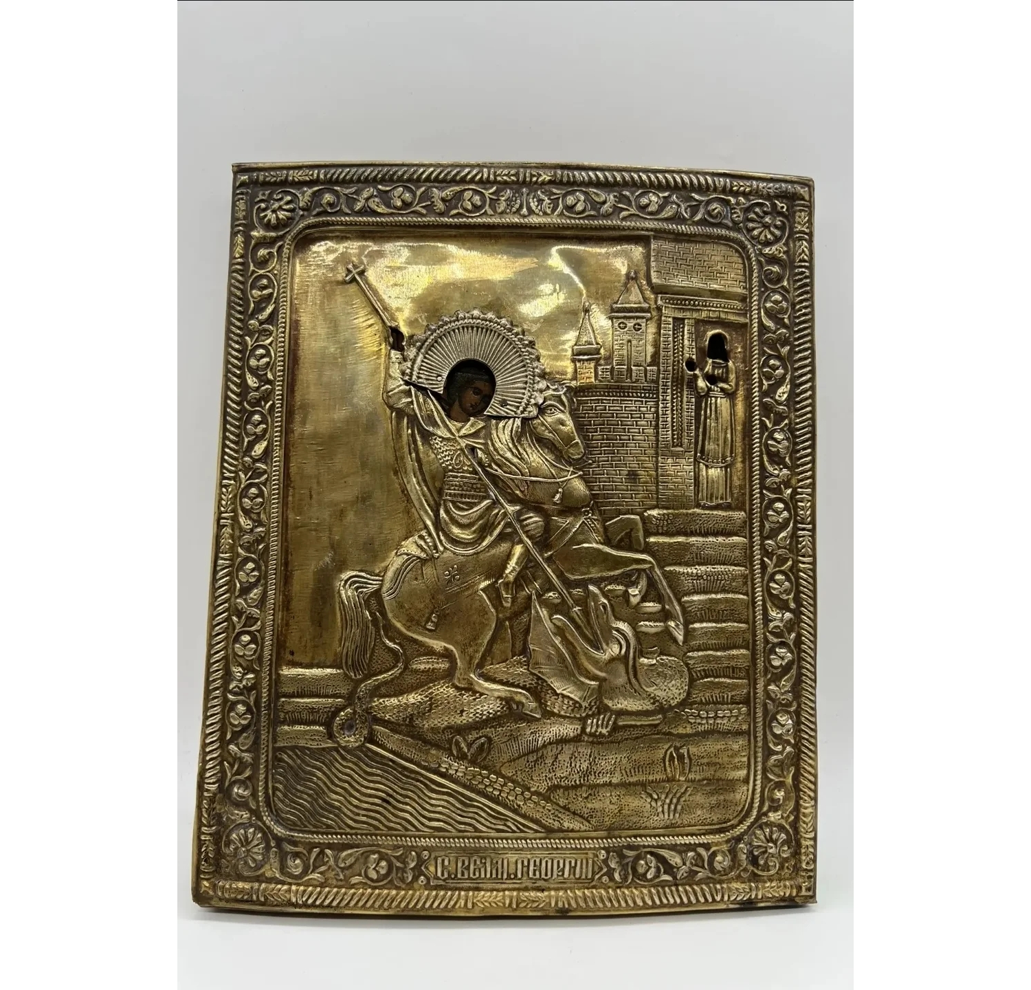 Святой: Георгий Победоносец (всадник, поражающий змия) — один из наиболее почитаемых христианских святых, покровитель воинов и защитник веры.