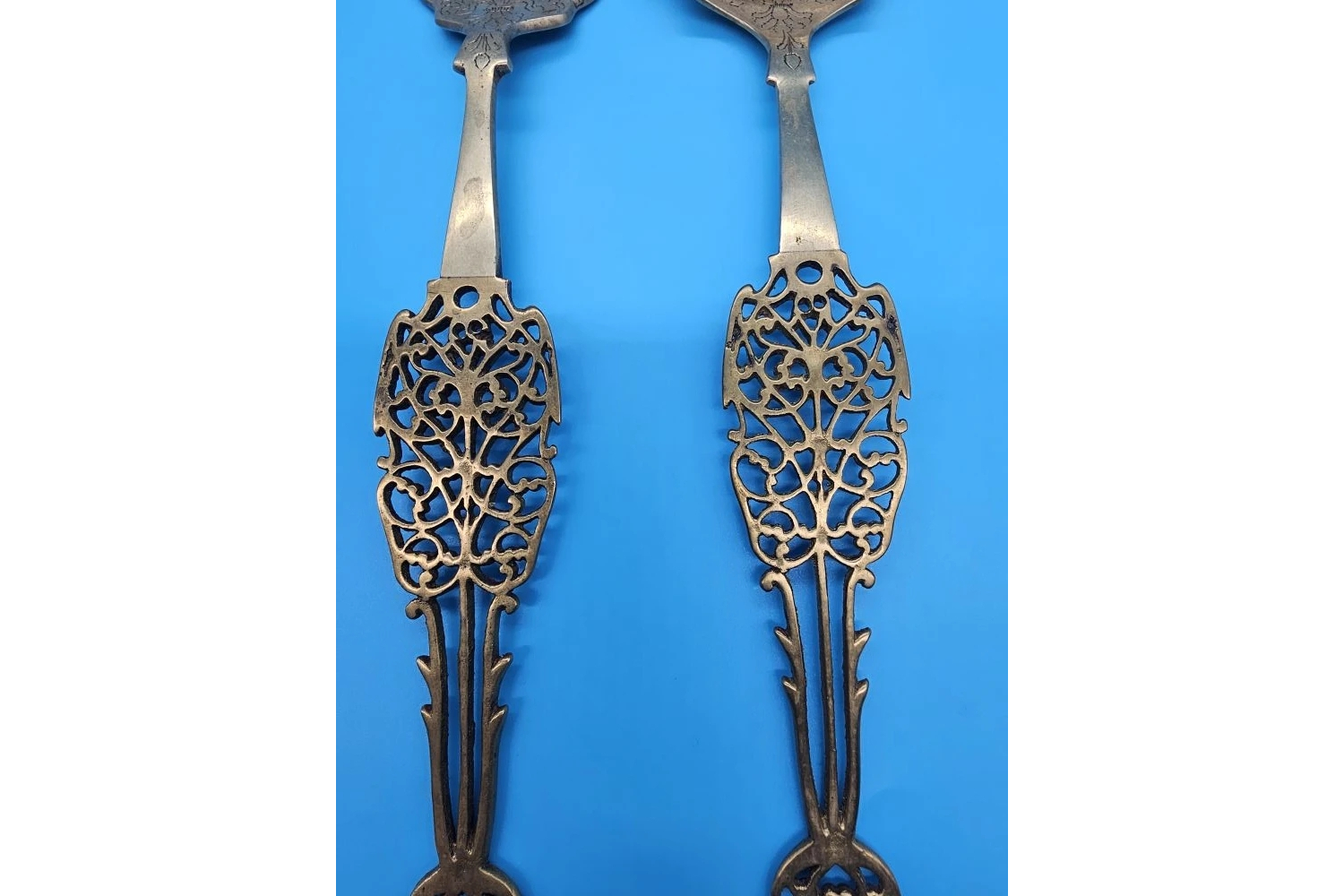 Ажурные элементы: сквозные узоры по краю рабочей части или на ручке — результат кропотливой ручной работы индийских мастеров.