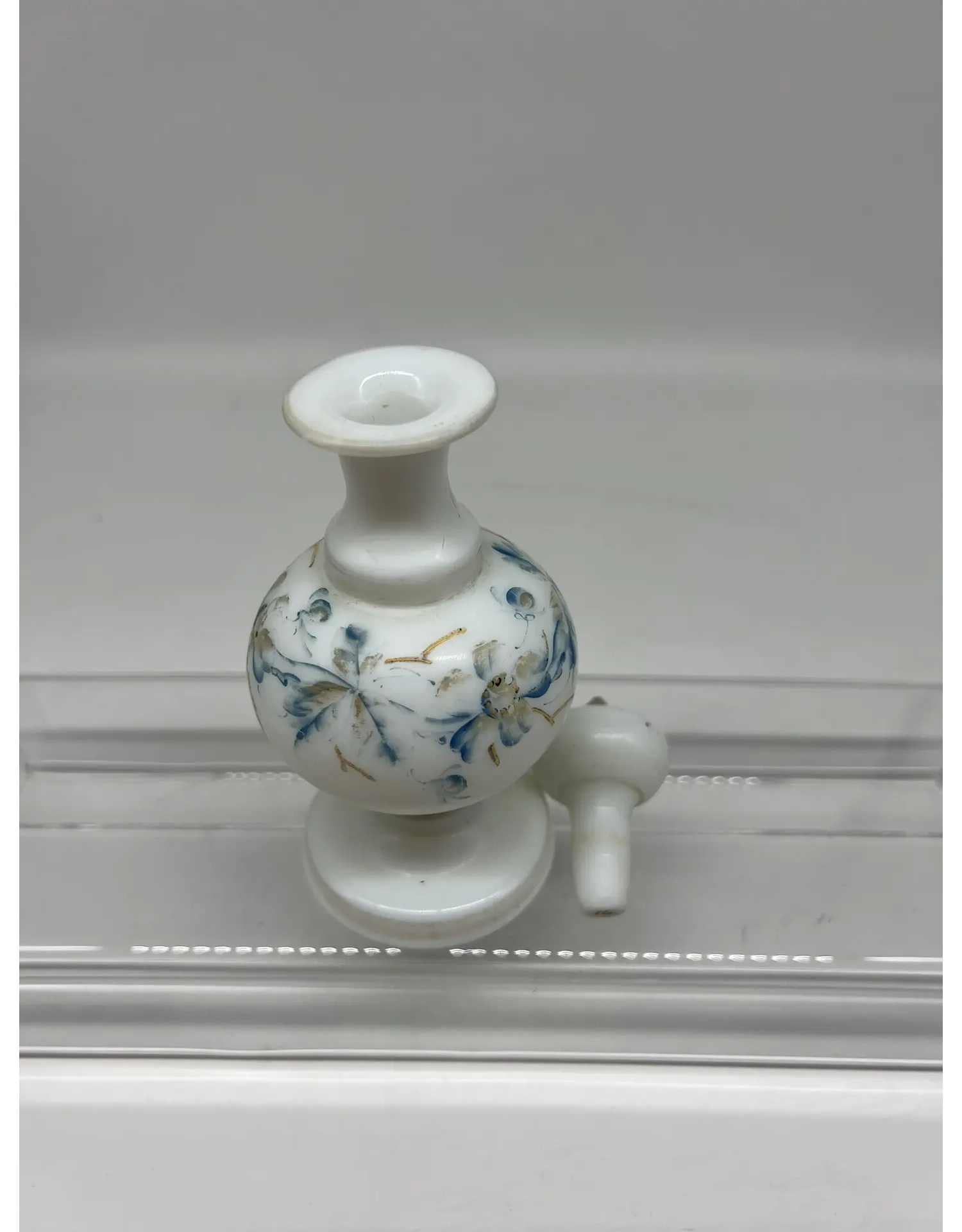 Изящный фарфоровый флакон вытянутой формы с плавными линиями силуэта. Элегантный дизайн характерен для парфюмерной посуды конца XIX века — эпохи, когда флаконы для духов были не просто ёмкостью, а настоящим украшением дамского туалетного столика.