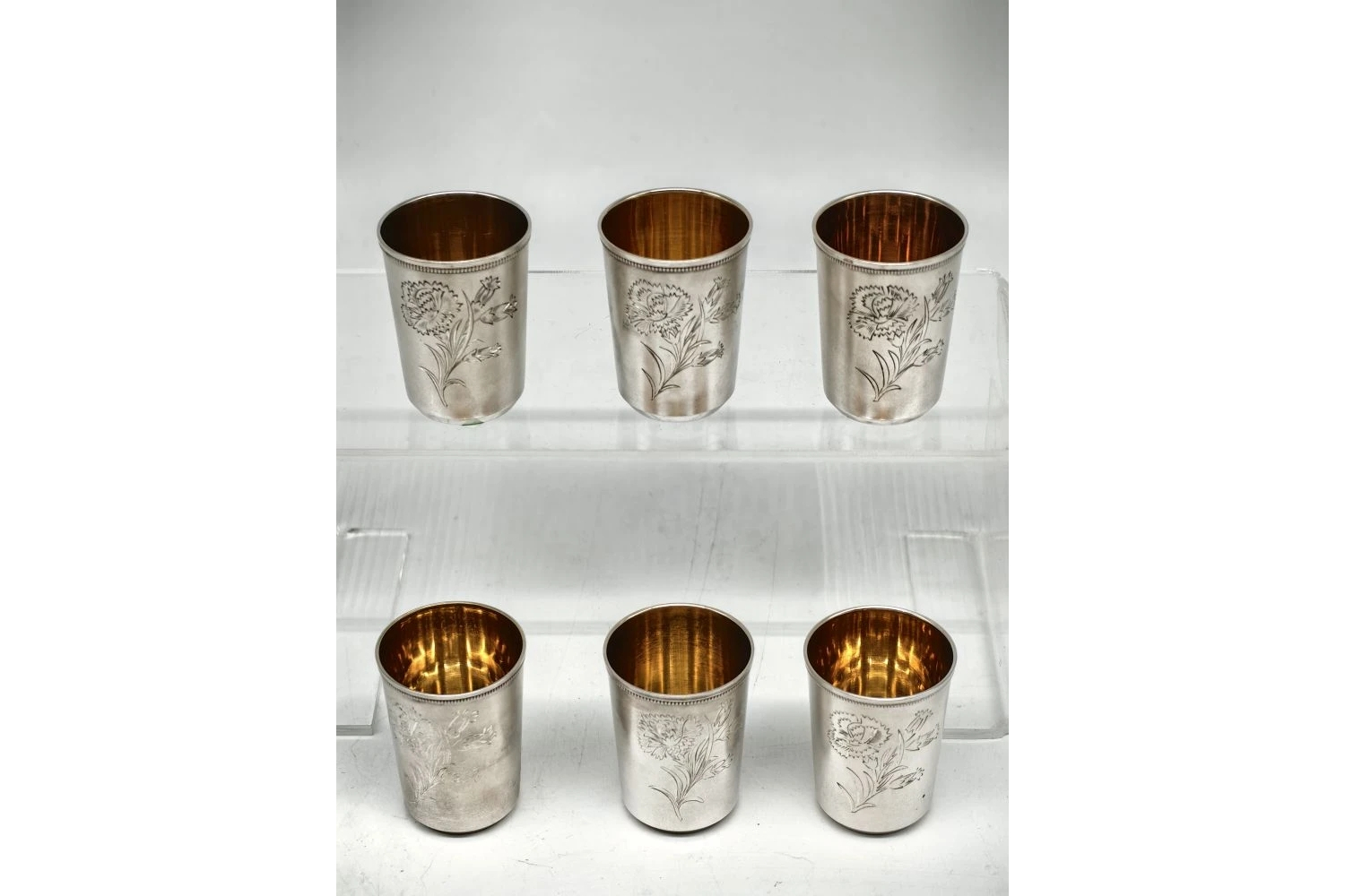 Состав набора: 6 серебряных рюмок.