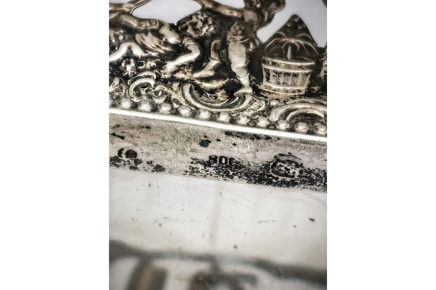 маркировка пробирного надзора (в зависимости от страны и эпохи — может включать герб, инициалы, цифры).