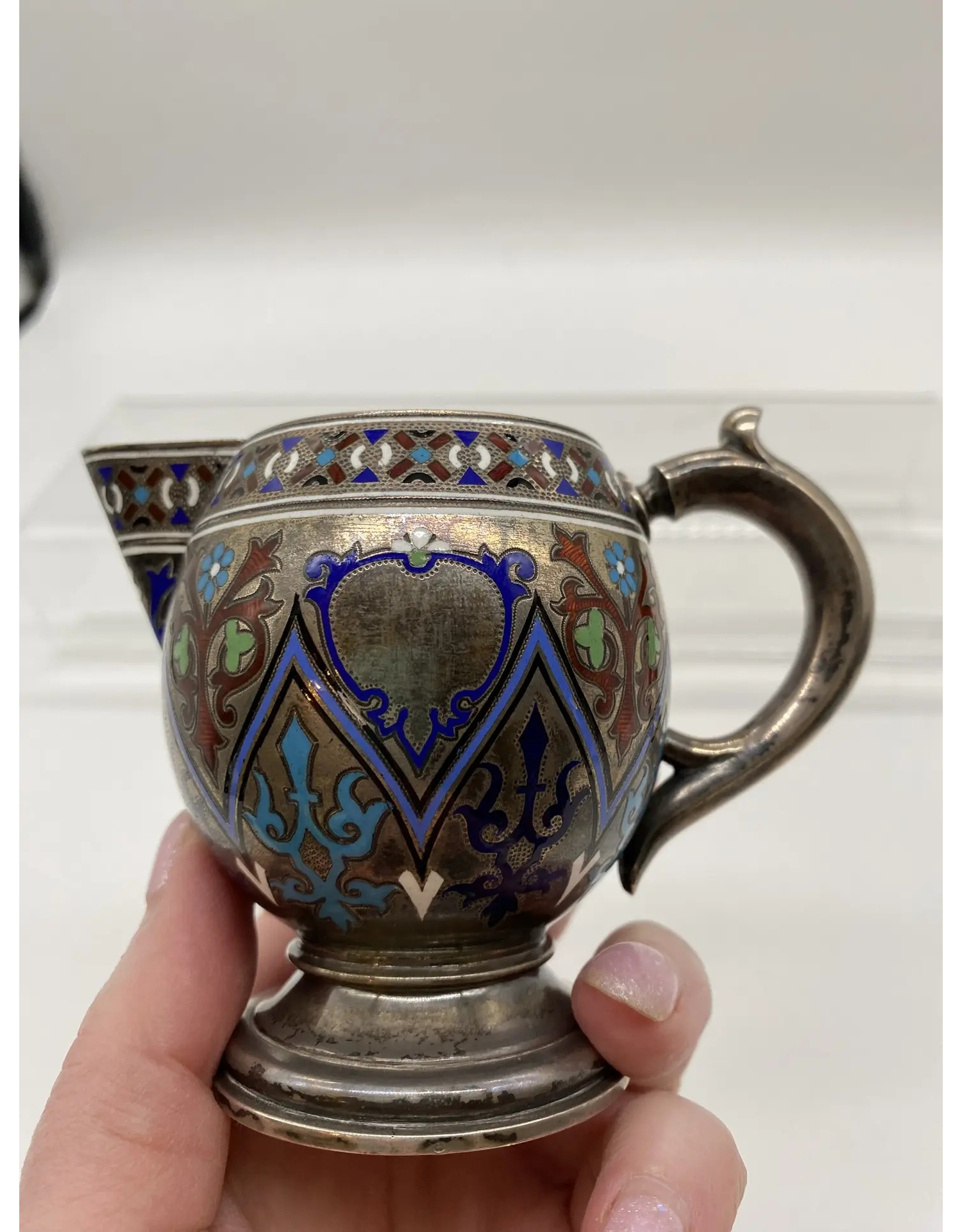 - Серебряный молочник. Эмаль. 88 проба.