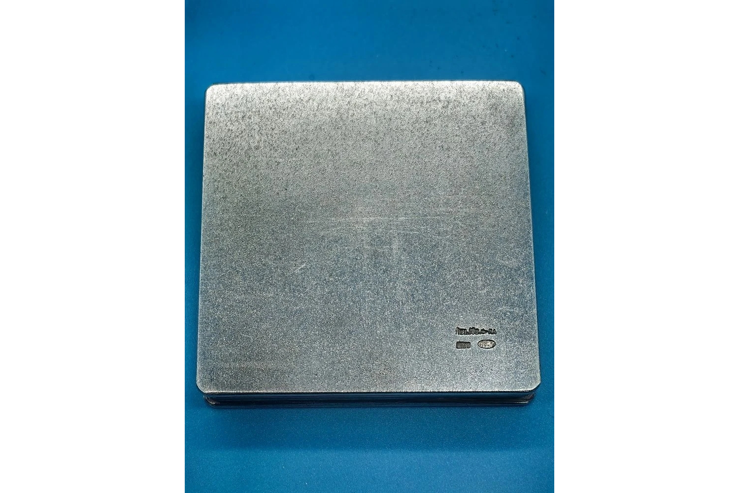 Инициалы мастеров: выгравированы на внутренней стороне крышки или дне пудреницы. Могут обозначать имя ювелира, владельца мастерской или ответственного за приёмку изделия. Наличие этих знаков значительно повышает историческую и коллекционную ценность предмета.