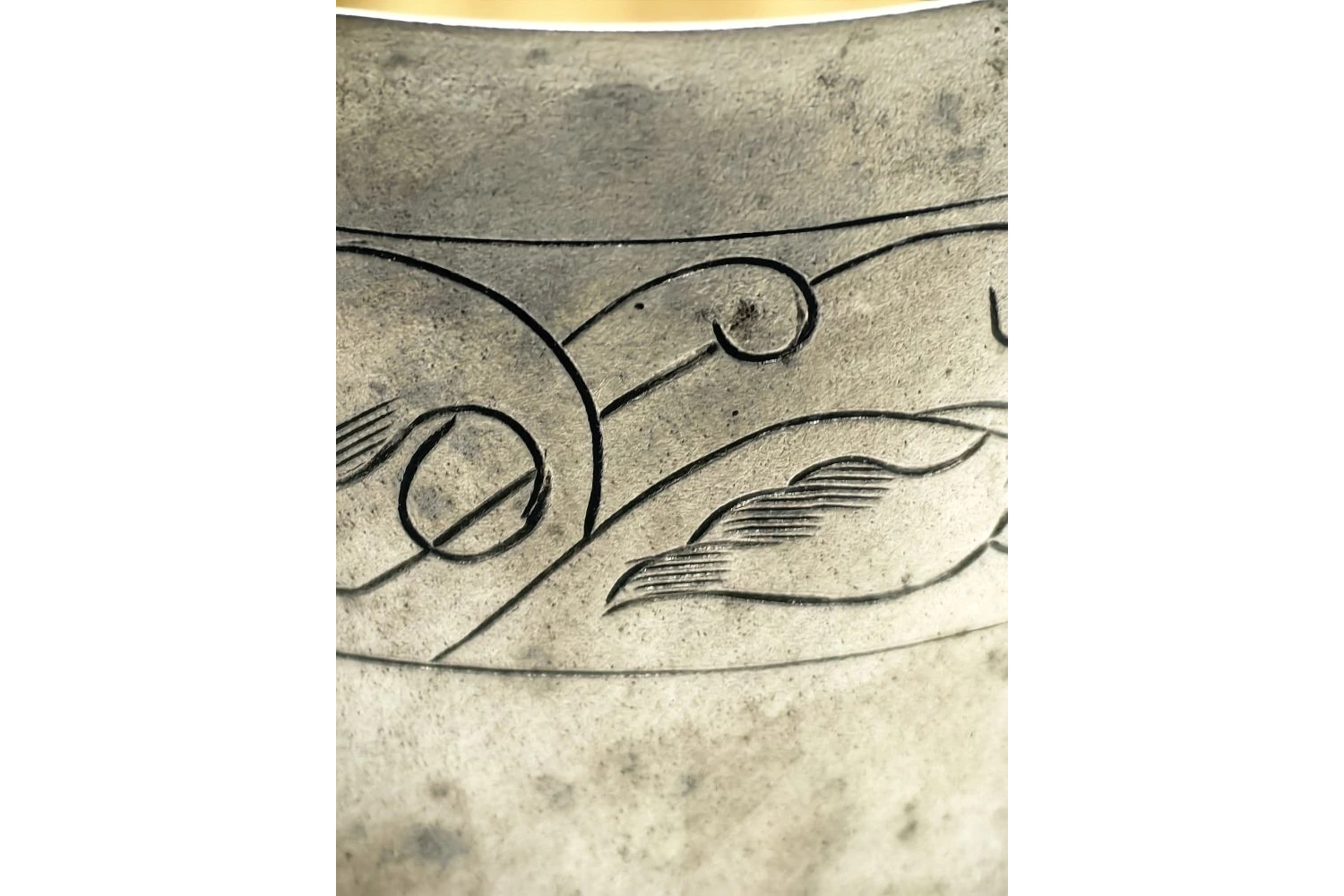 Гравировка: узор, выполненный штихелем, отличается чёткостью линий и глубиной проработки. Возможны растительные мотивы, геометрические орнаменты или монограммы — характерные для винтажного стиля.
