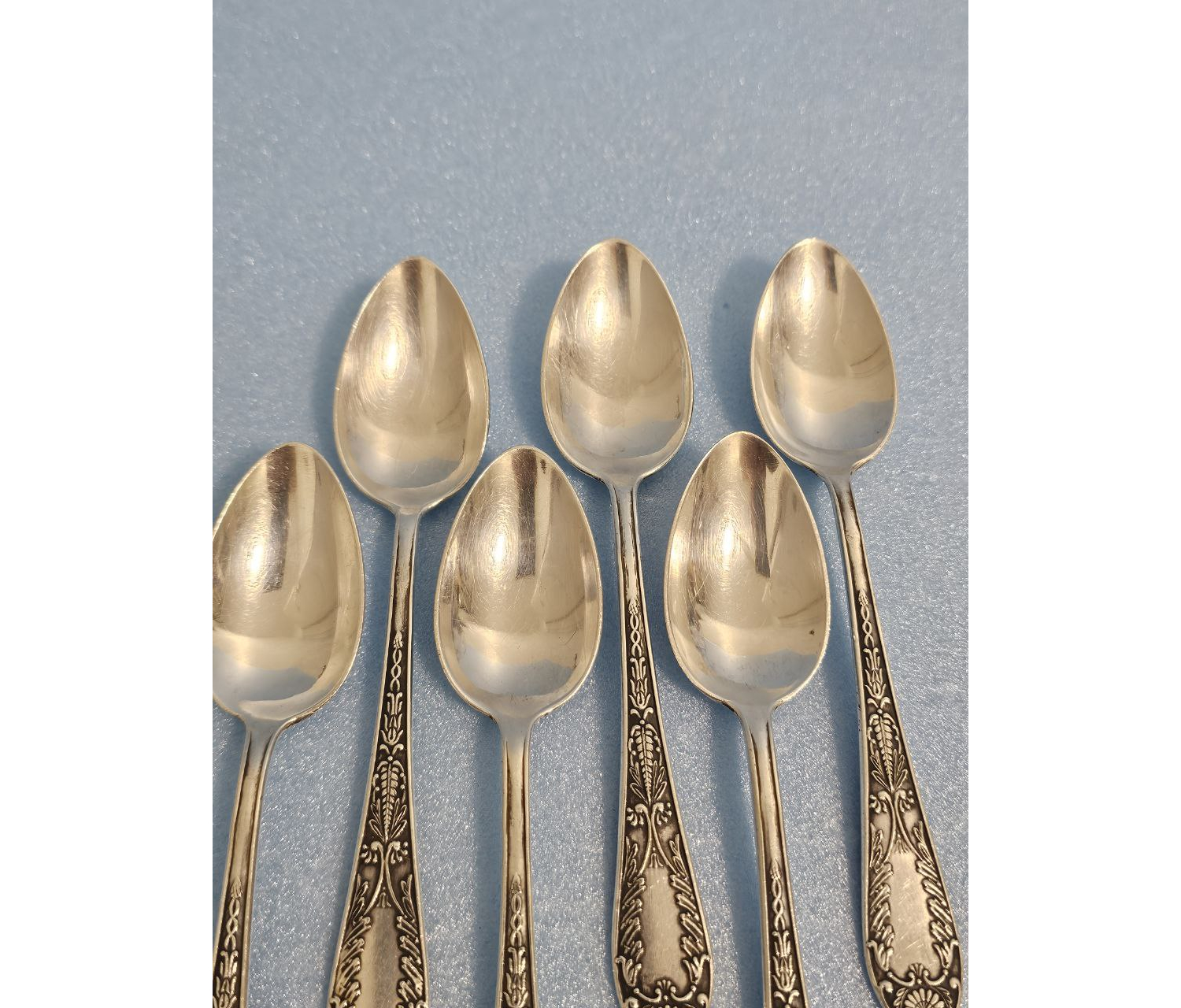 Однородность цвета и блеска всех ложек подтверждает их принадлежность к единому производственному выпуску.