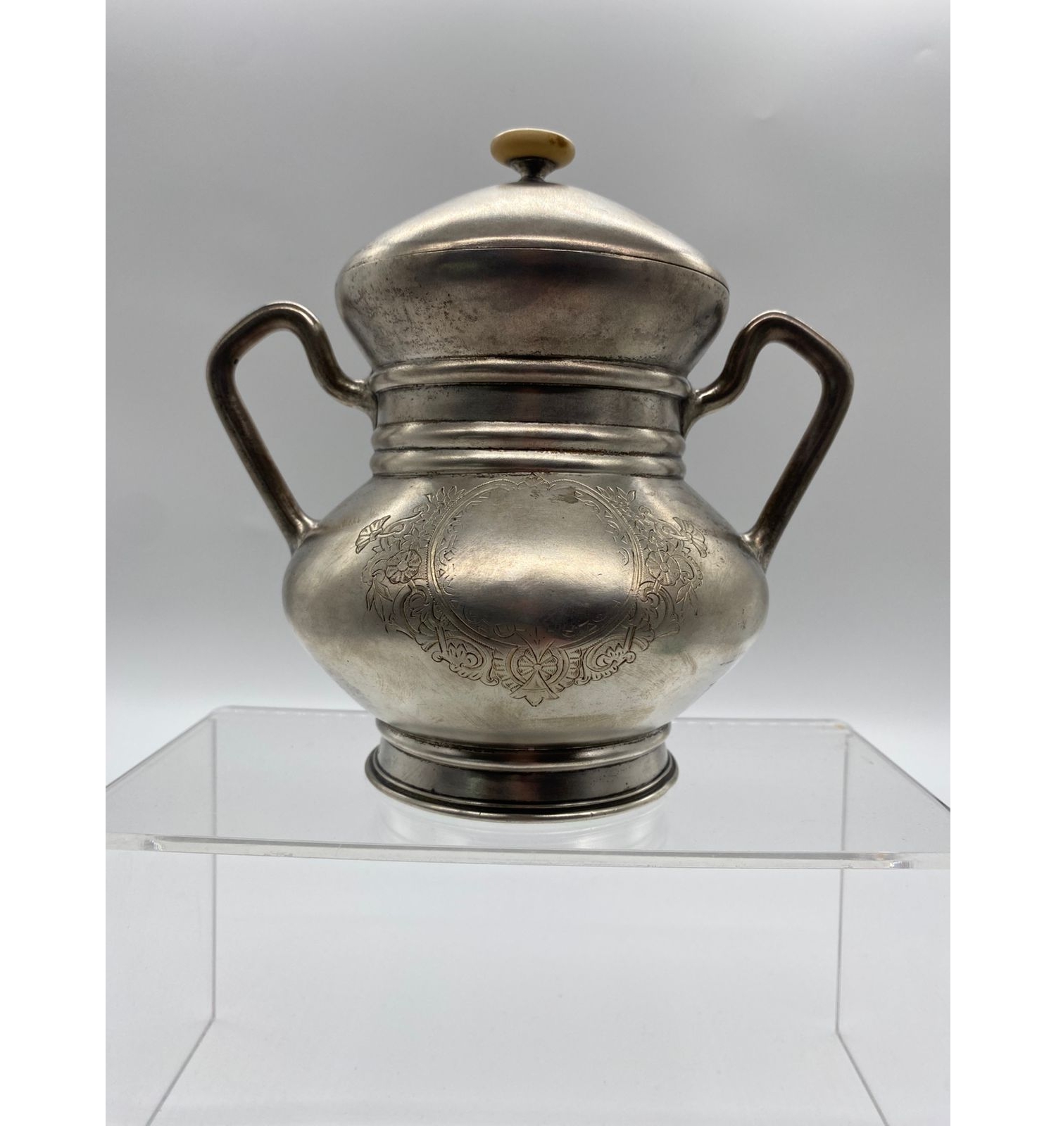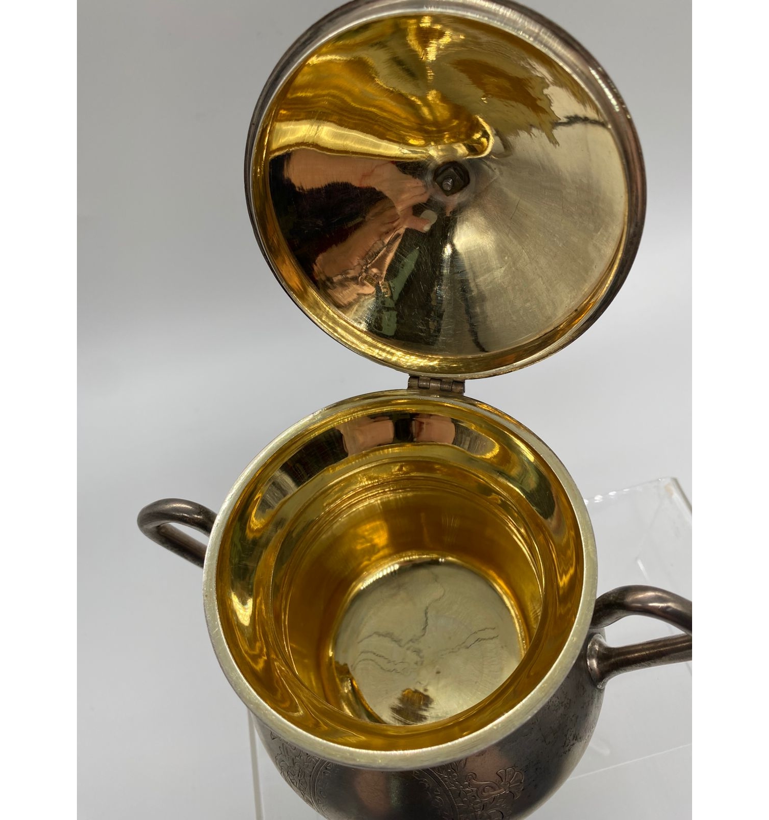 Эта сахарница — подлинное произведение искусства, в котором мастерски сочетаются благородные материалы и виртуозная техника исполнения. Изысканная резьба штихелем в сочетании с перламутровыми вставками и внутренней позолотой создаёт неповторимый образ, достойный самых изысканных коллекций. Она является ярким свидетельством высокого уровня ювелирного искусства в период Российской империи.