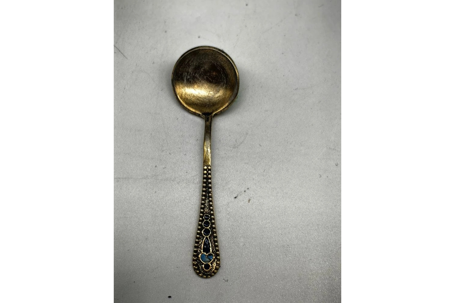 Размеры: типичные для солевой ложечки: общая длина около 10–12 см, чаша — 2–3 см в диаметре.