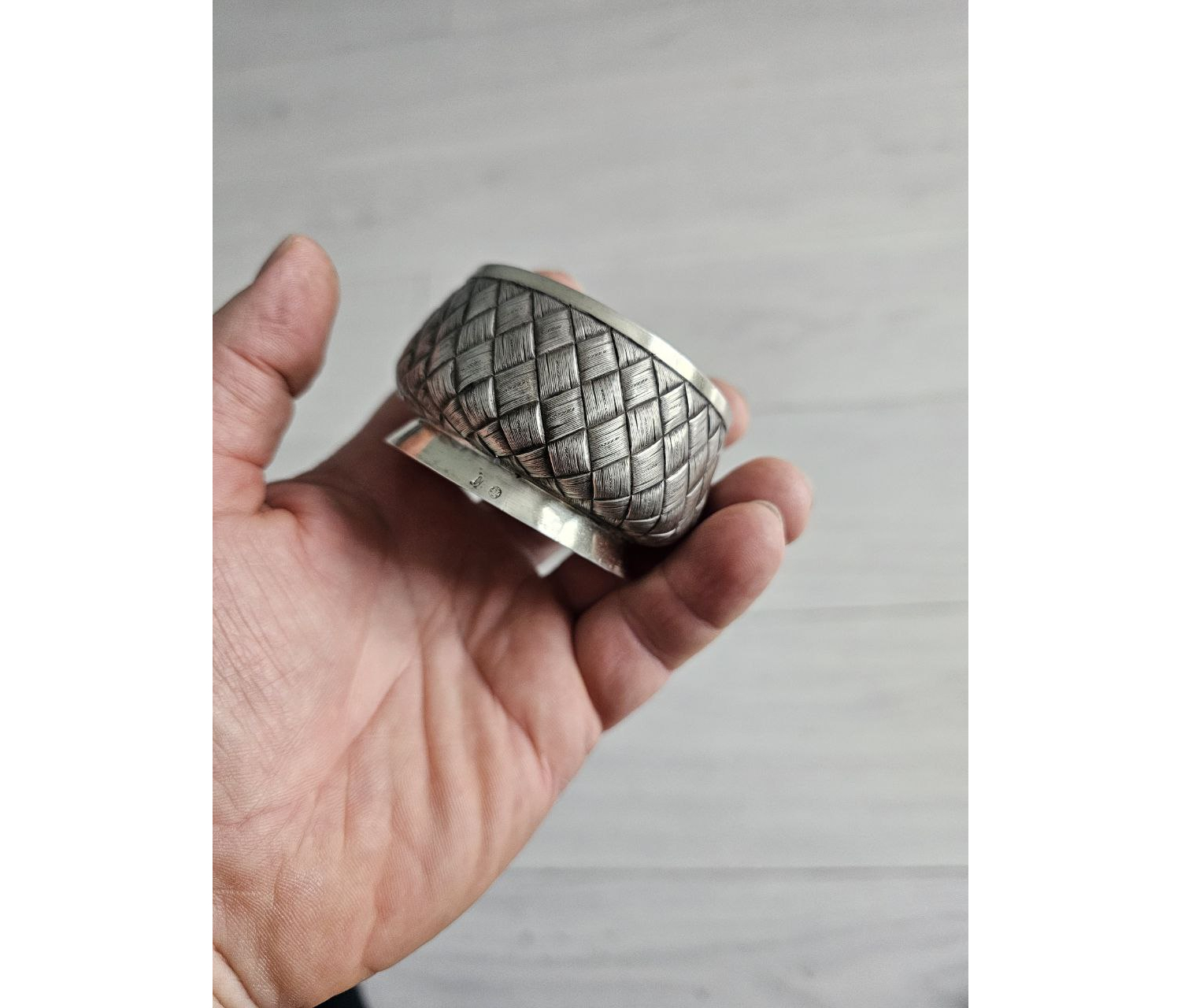 фактура: сочетание матового рельефа «плетёнки» и глянцевой полировки бортика и внутренней части.
