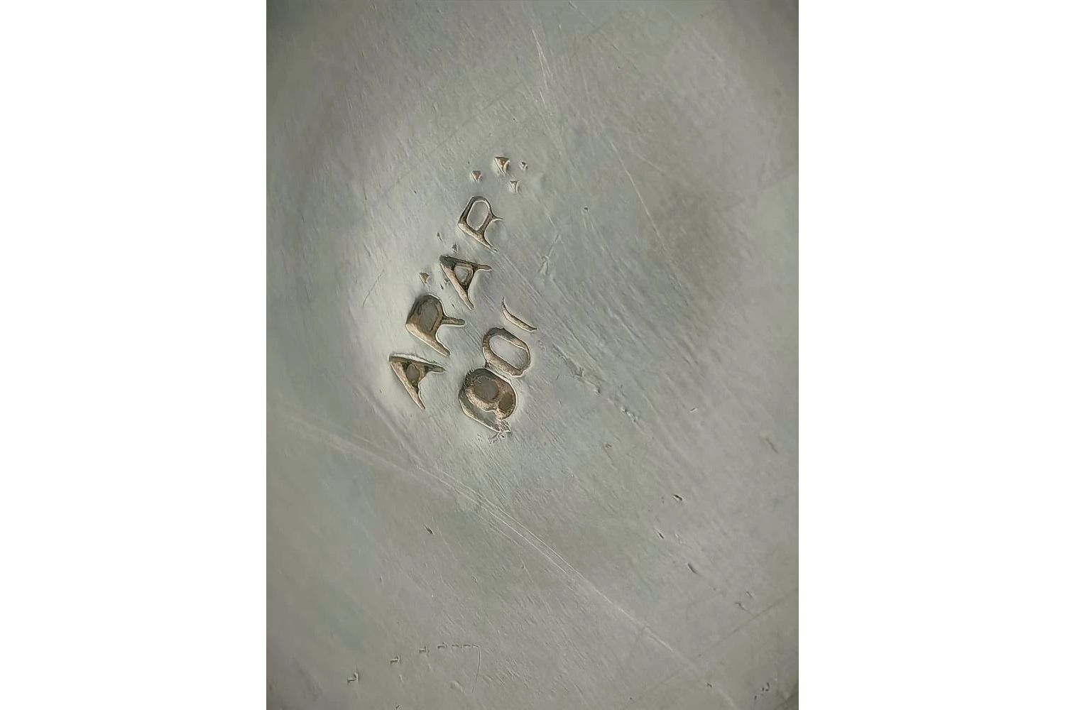 Клейма: вероятно наличие пробы, инициалов мастера и логотипа мастерской (на дне кувшина и подноса).