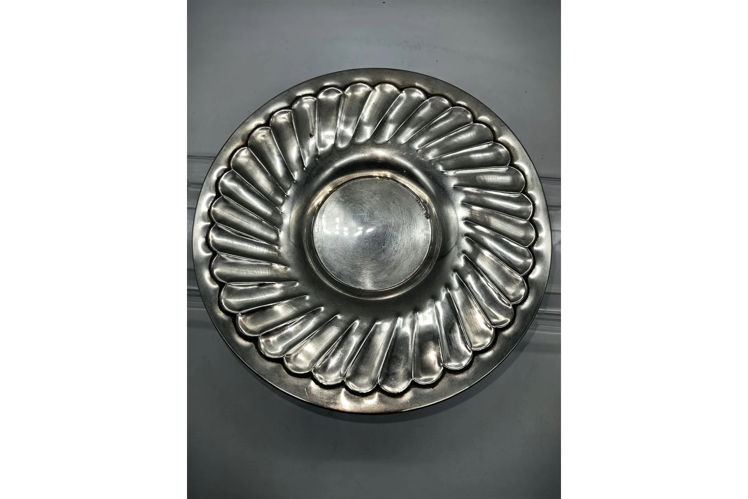 Представляем изысканный сервизный комплект — кувшин с подносом, выполненный из серебра 800‑й пробы. Это образец европейского ювелирного искусства прошлого века: сочетание функциональности, благородной эстетики и безупречного качества исполнения.