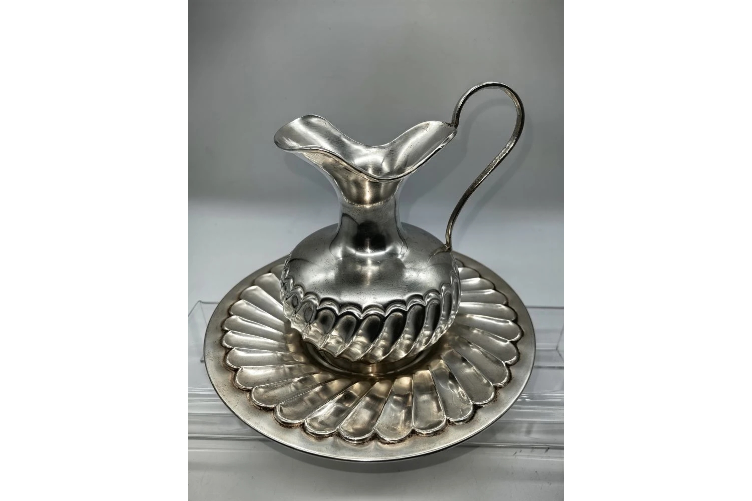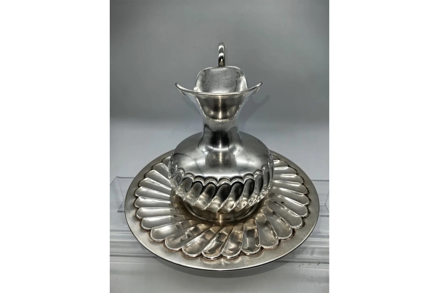 Серебряный кувшин с подносом: винтажный комплект европейского происхождения