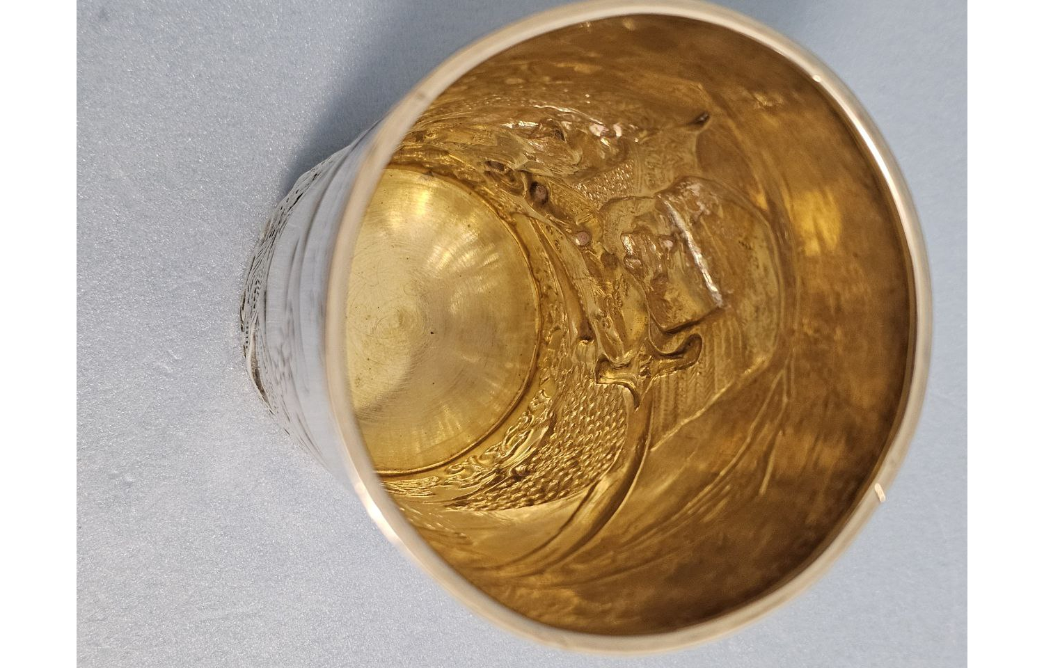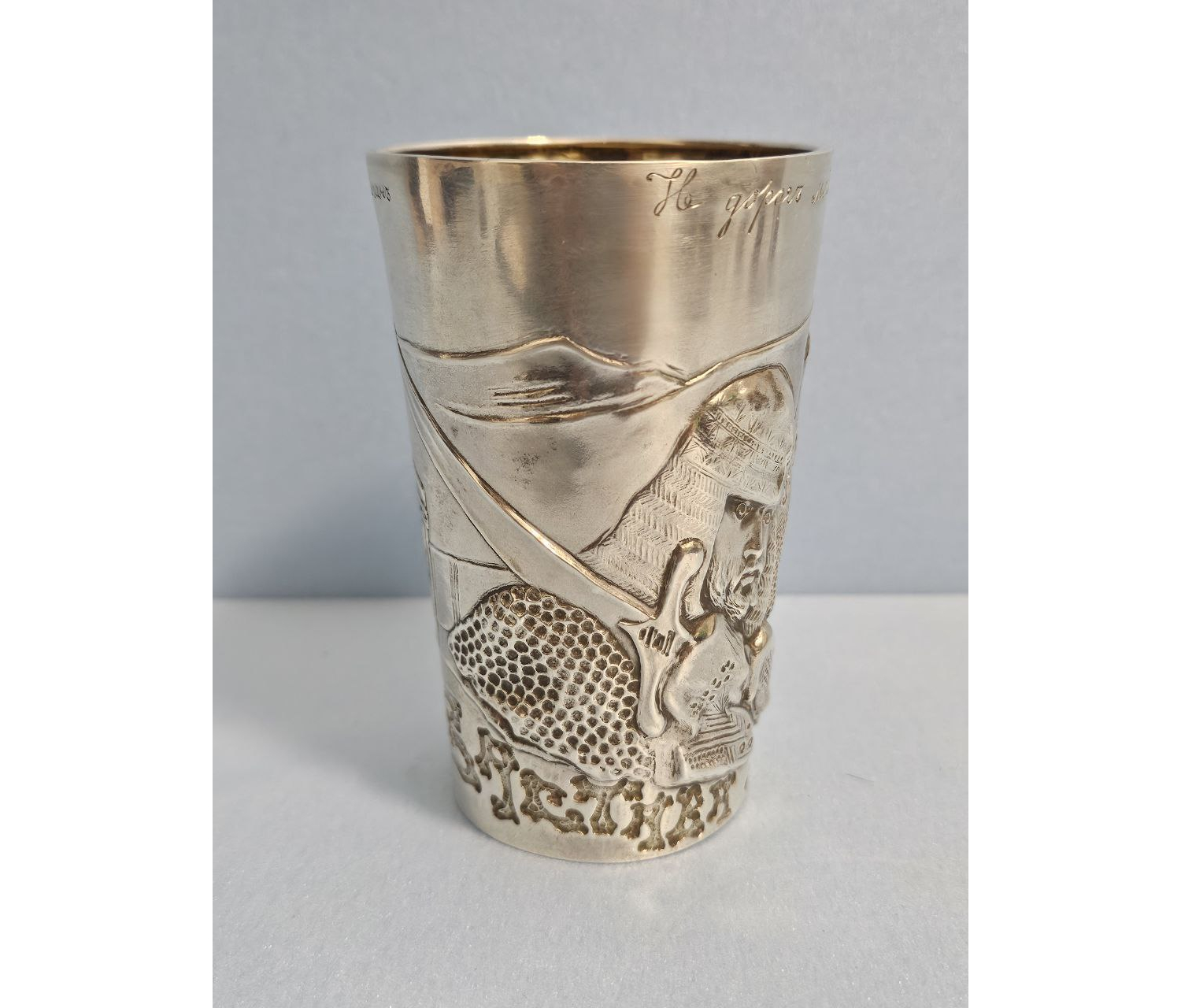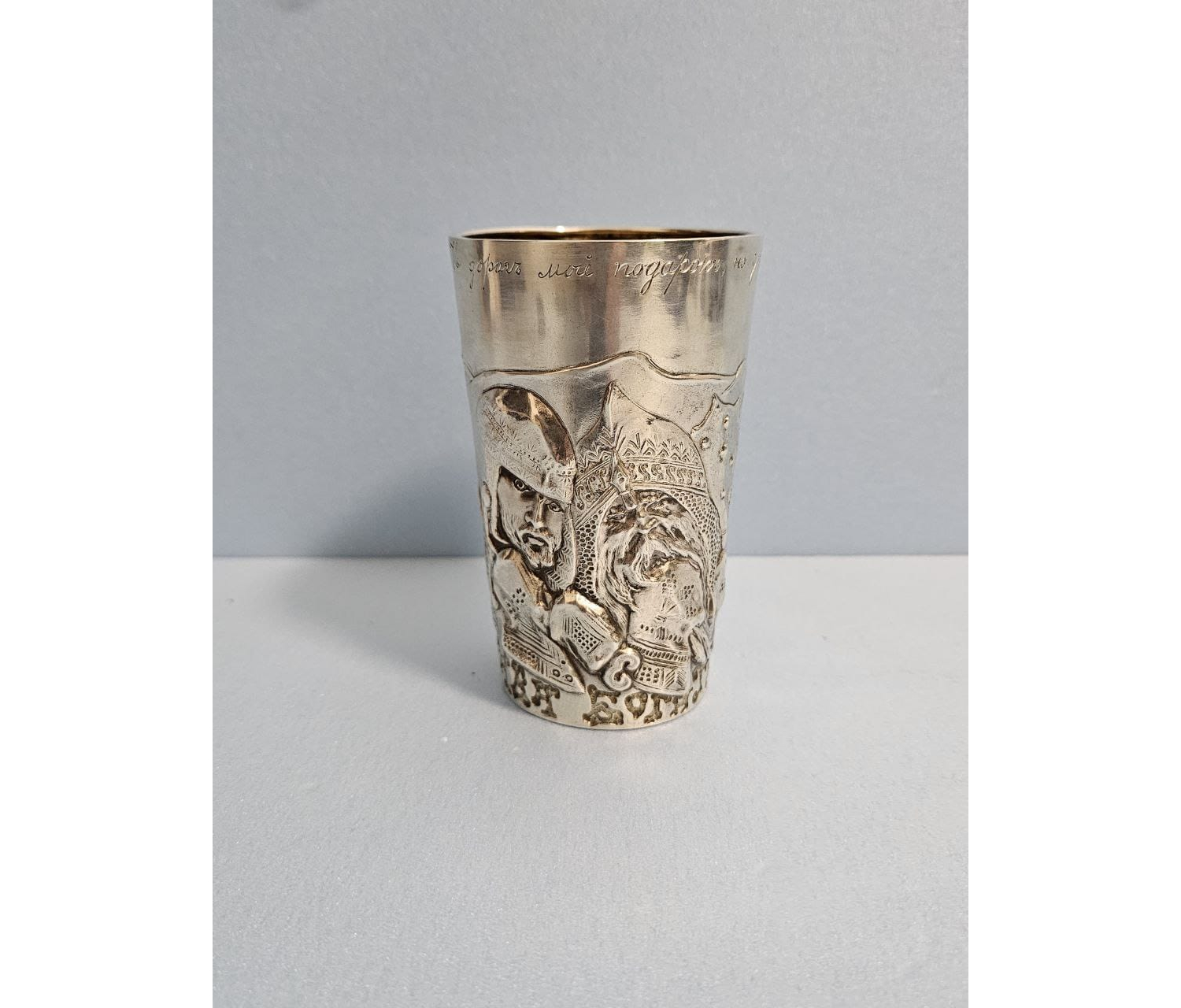 Предлагаем вашему вниманию уникальное произведение русского художественного промысла XIX века — серебряный стакан ручной работы с выразительным названием «Богатырская застава», изготовленный талантливым мастером Михаилом Тарасовым в эпоху Российской империи.