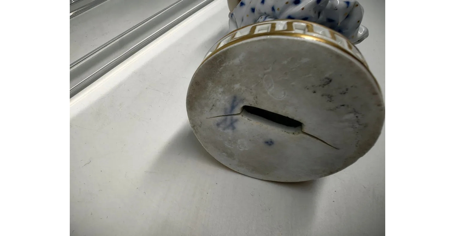 подглазурное клеймо синего цвета — знаменитые перекрёстные мечи (символ Meissen);
