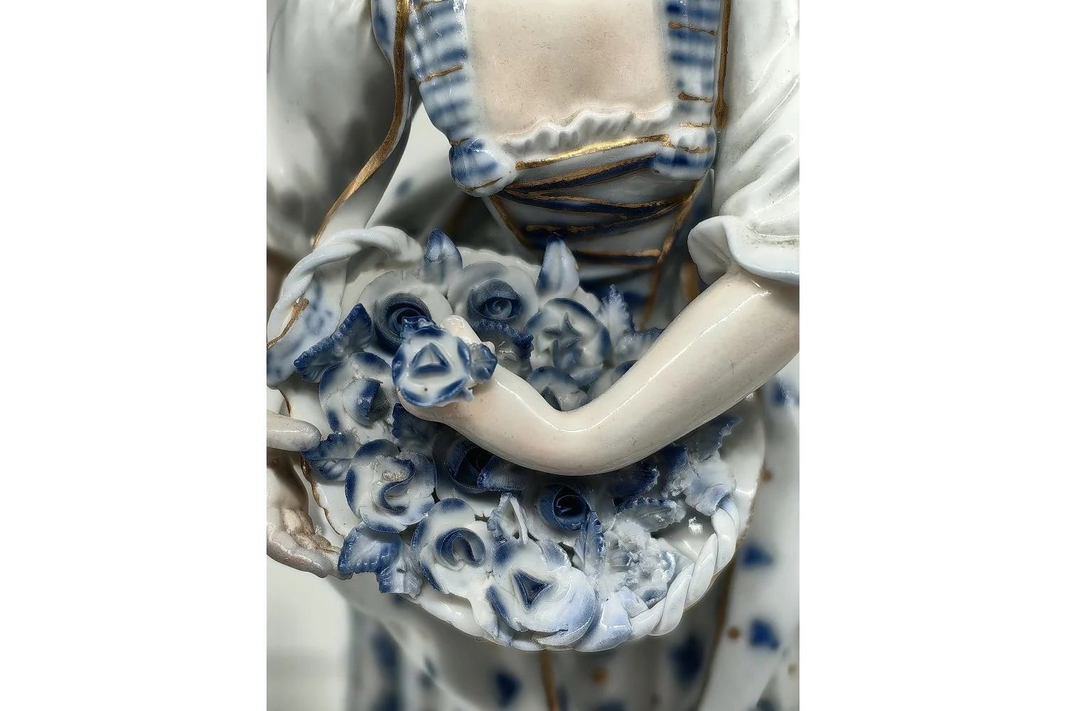 Сюжет «Дамы с цветами» типичен для мейсенской пластики: он отражает эстетику рококо и классицизма — интерес к пасторальным сценам, галантным мотивам и природной красоте. Подобные статуэтки украшали дворцовые интерьеры и коллекции европейской знати.