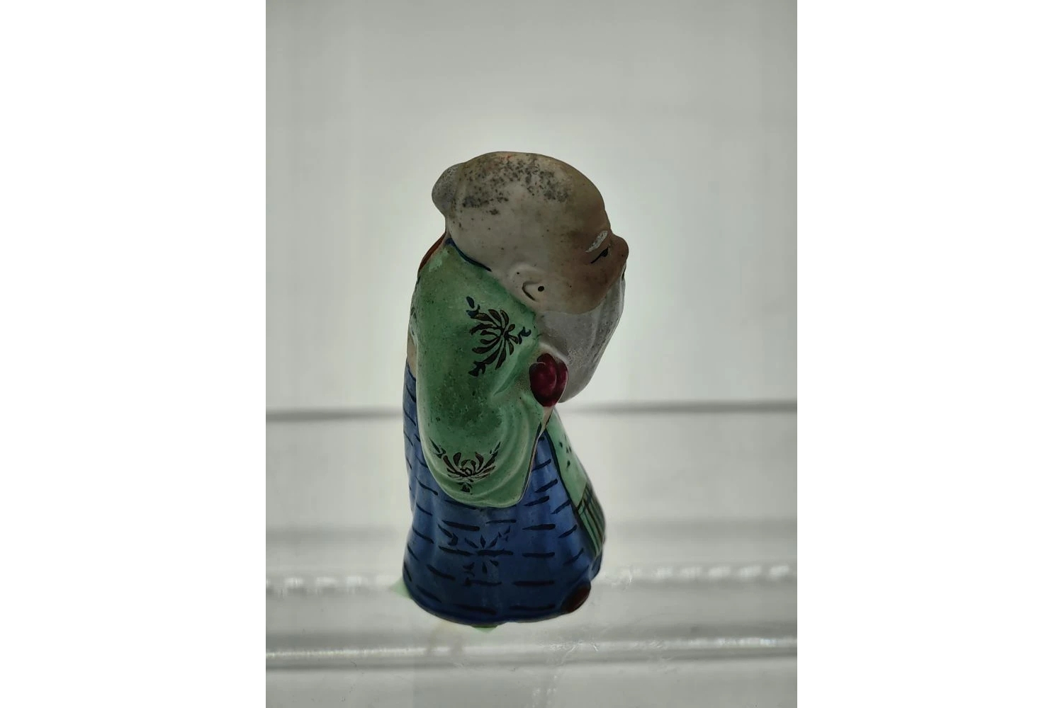 Фарфоровая статуэтка Фукурокудзю — антикварное изделие высотой 6 см, созданное в Китае в 1920–1930‑х годах. Фукурокудзю — один из семи богов счастья в восточной традиции, воплощающий мудрость, долголетие, успех в учёбе и карьере, а также интуицию.