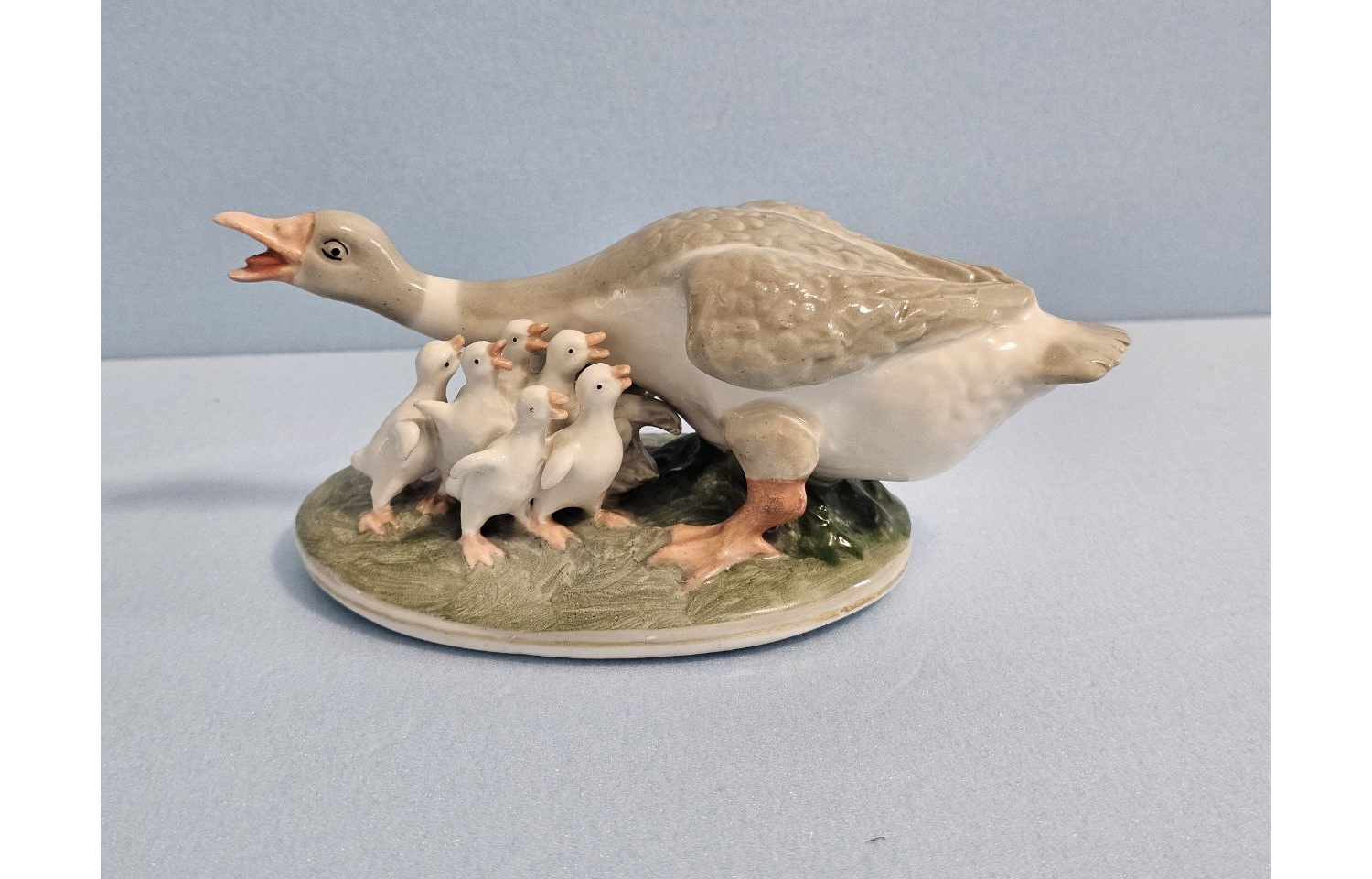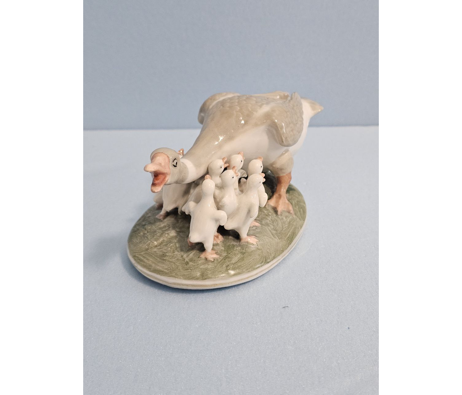 Представляем вашему вниманию фарфоровую статуэтку "Гусиный переполох", созданную на Дулевском фарфоровом заводе в 1956 году. Эта изящная скульптура выполнена из высококачественного фарфора и является прекрасным образцом советского декоративно-прикладного искусства.