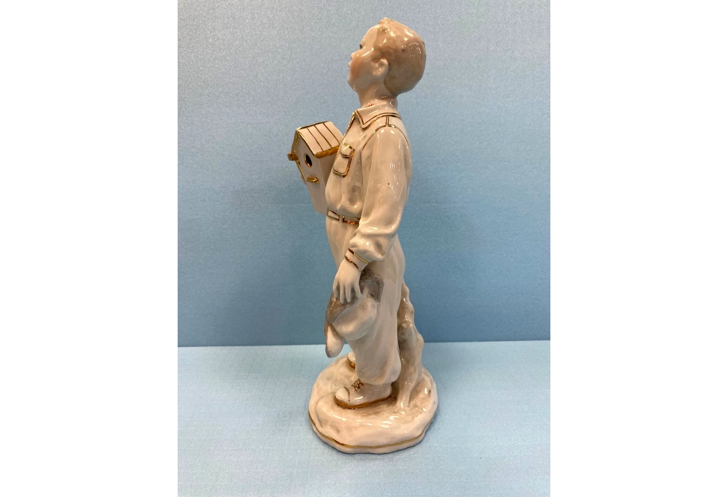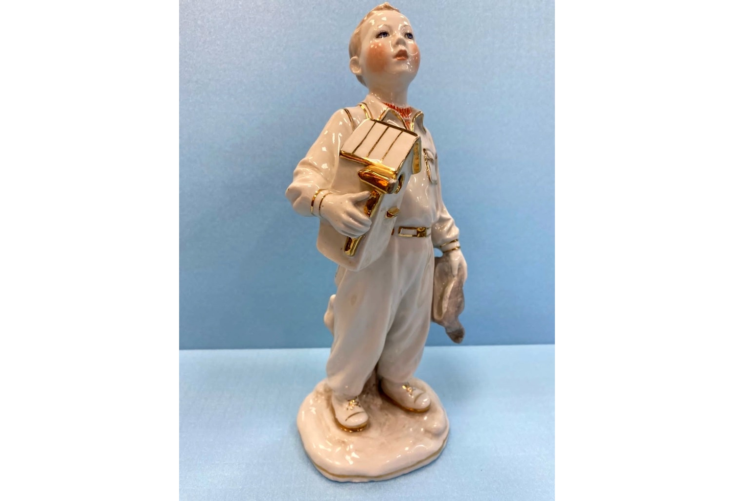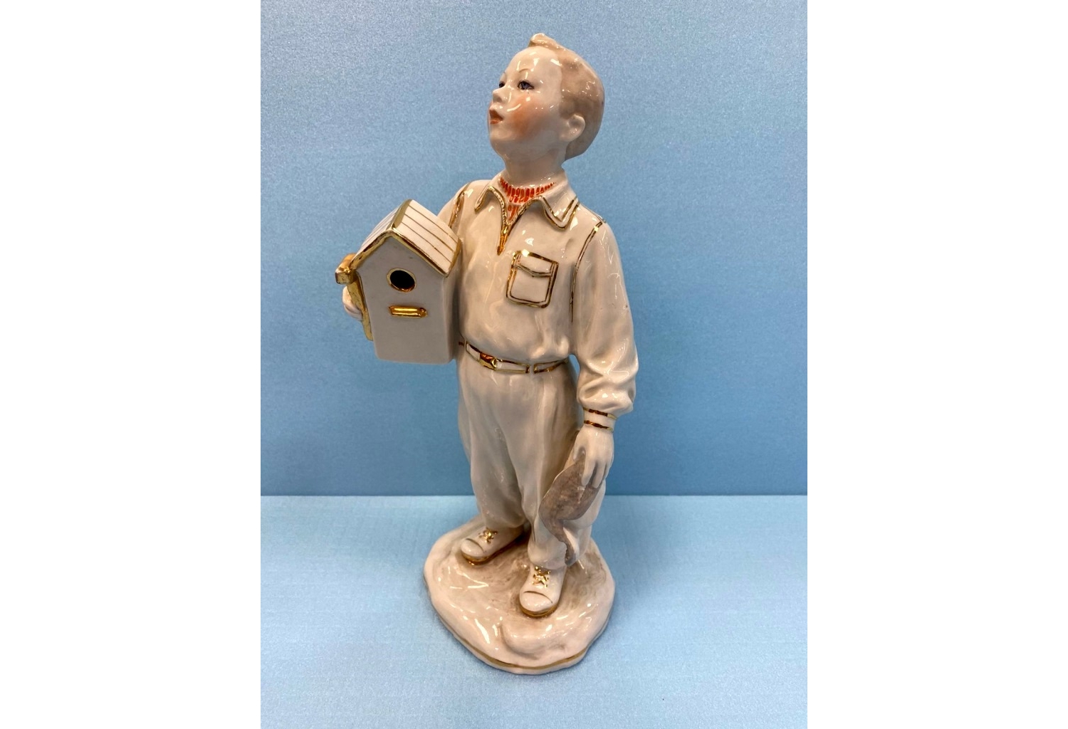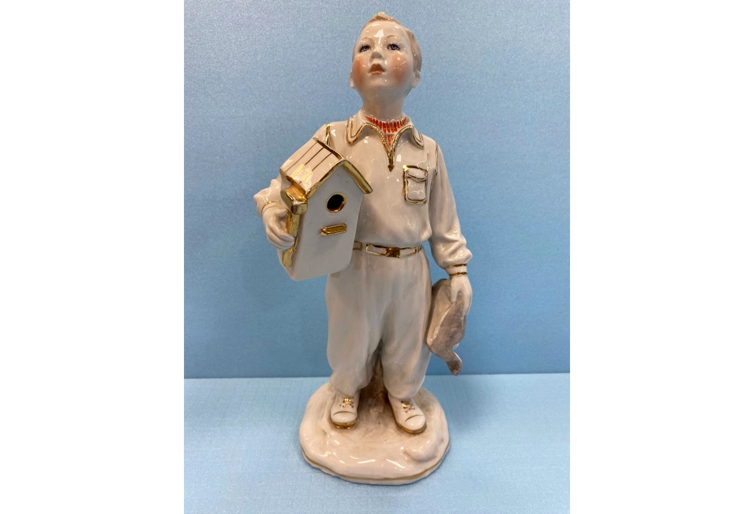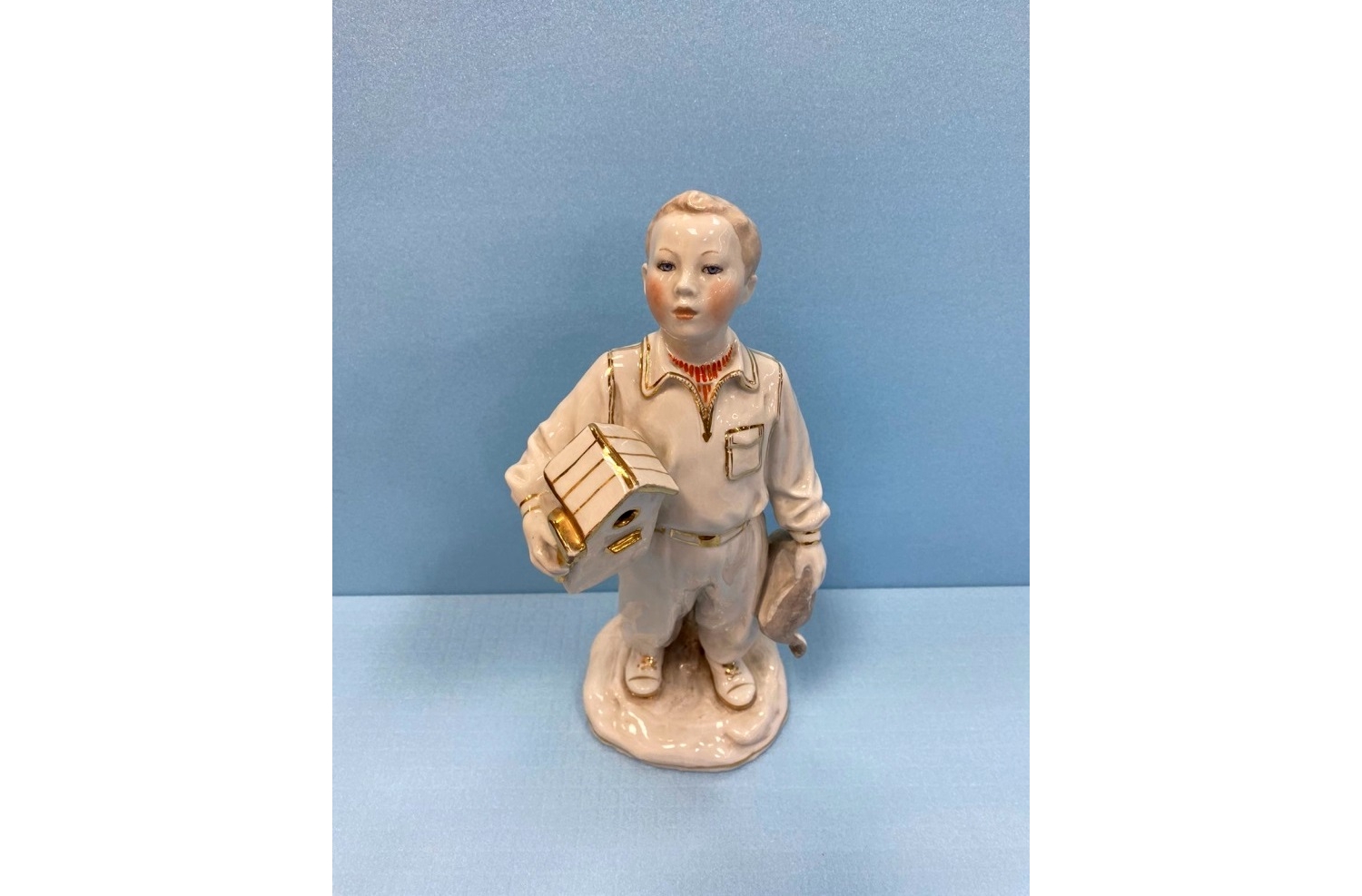 Фарфоровая статуэтка «Мальчик со скворечником» (автор — Е.И. Брежицкая, Дулёвский фарфоровый завод)