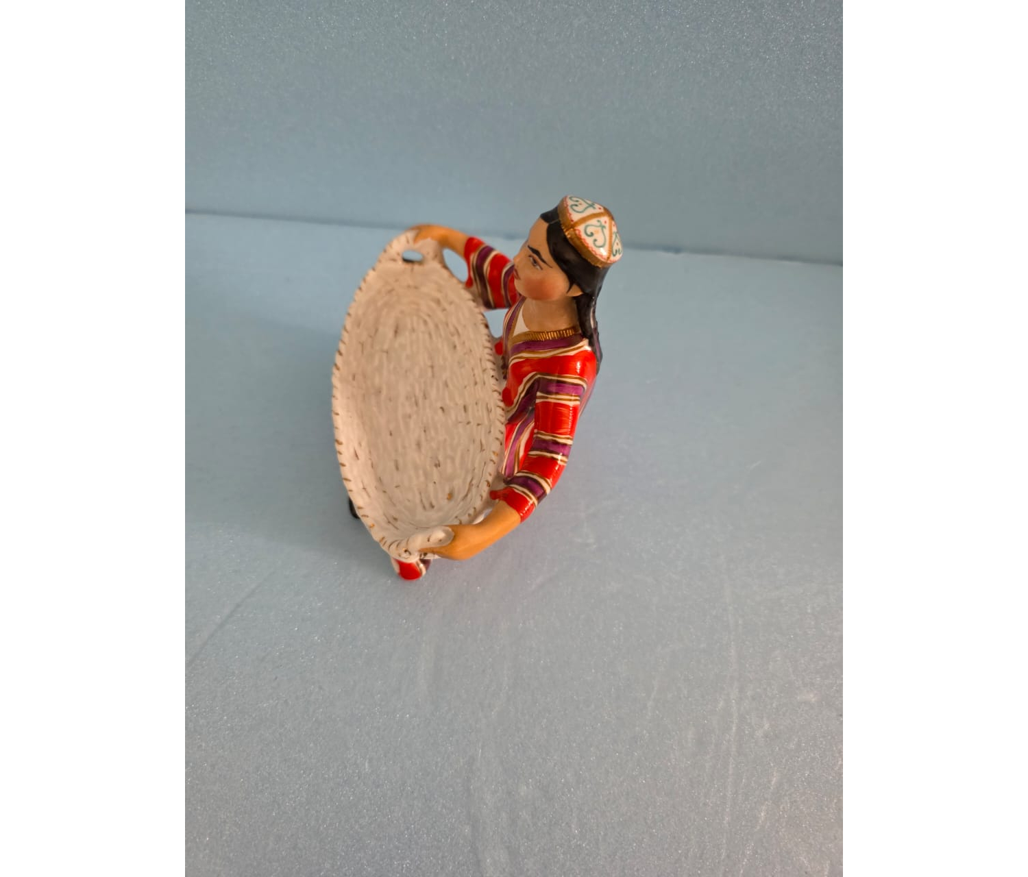 Этнический колорит: статуэтка представляет собой образ узбекской женщины с традиционной корзиной