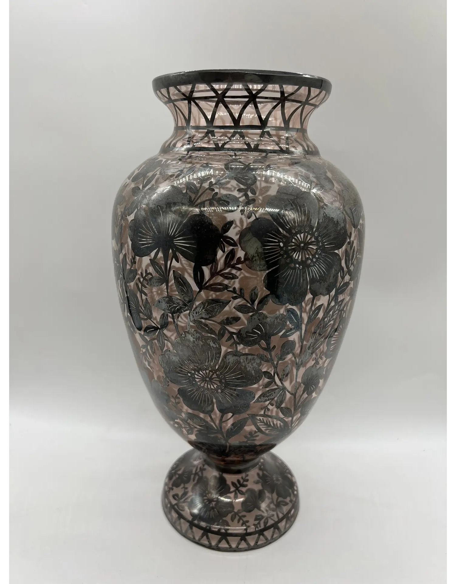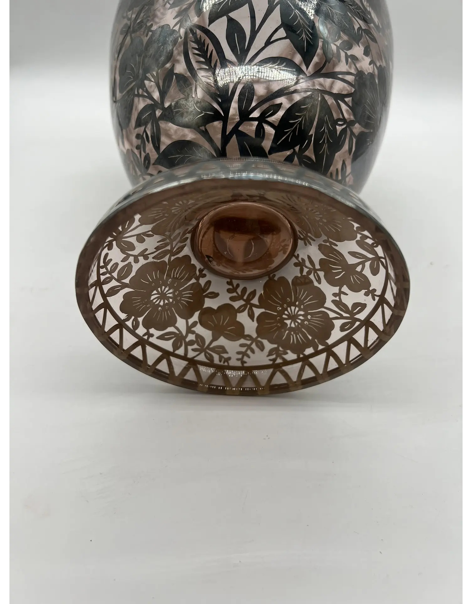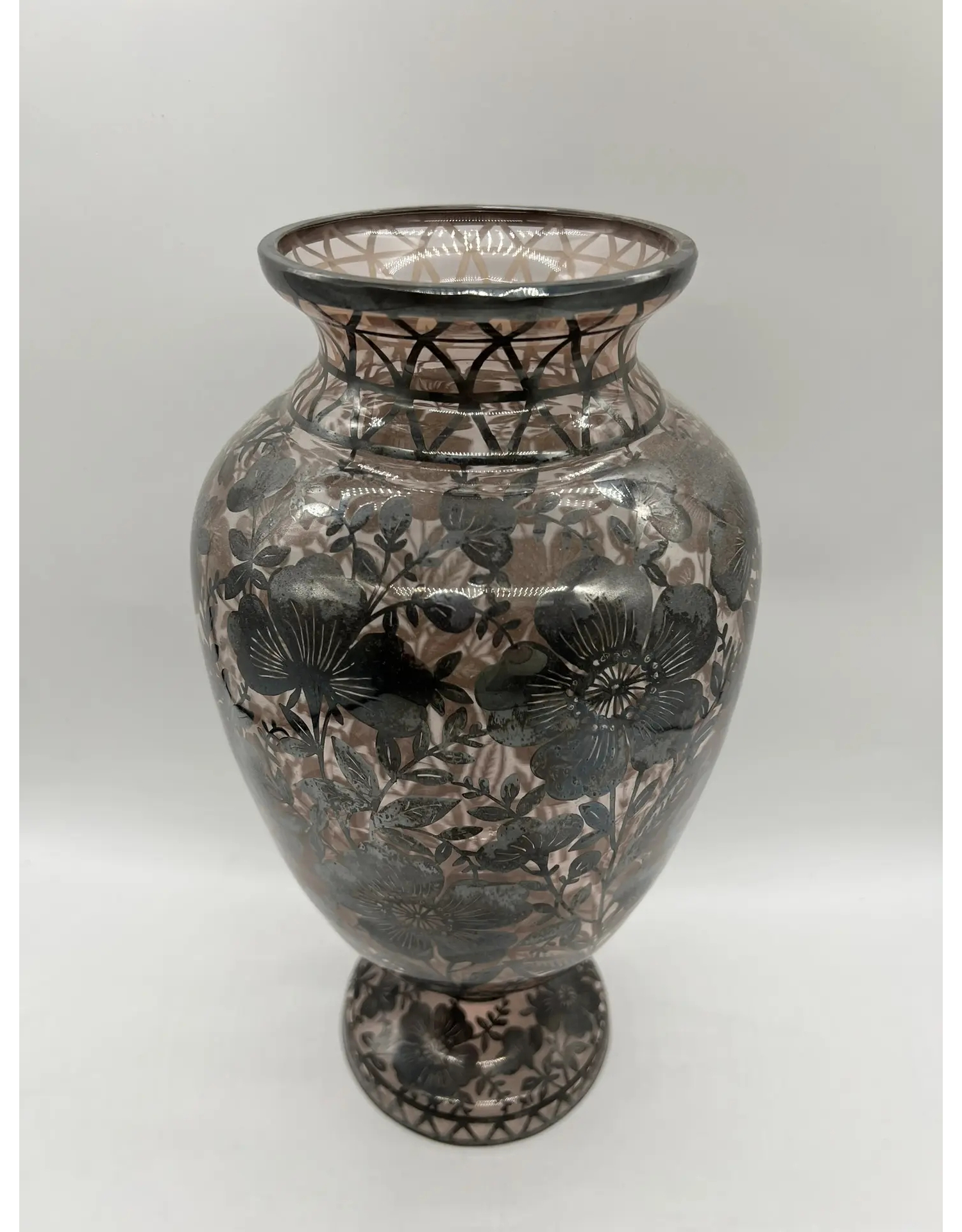 Элегантная винтажная ваза — изысканный элемент декора, сочетающий прозрачность стекла и благородство серебряной росписи. Изделие добавит интерьеру утончённости и станет акцентом в классическом или эклектичном стиле.