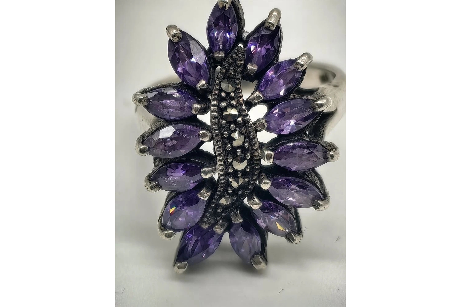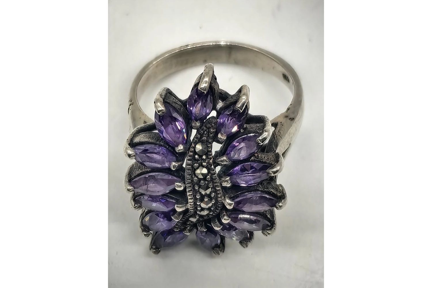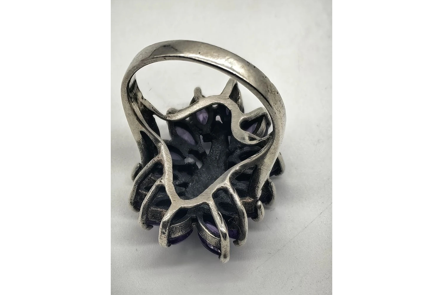- Винтажное серебряное кольцо с аметистами.