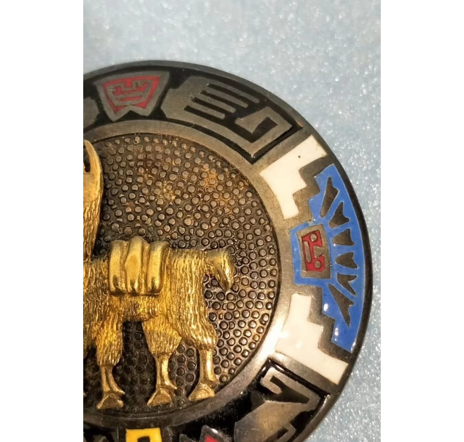 Эта брошь — настоящее произведение ювелирного искусства, отражающее богатое культурное наследие Перу. Сочетание серебра и золота, дополненное традиционным орнаментом, делает её не только украшением, но и ценным культурным артефактом.