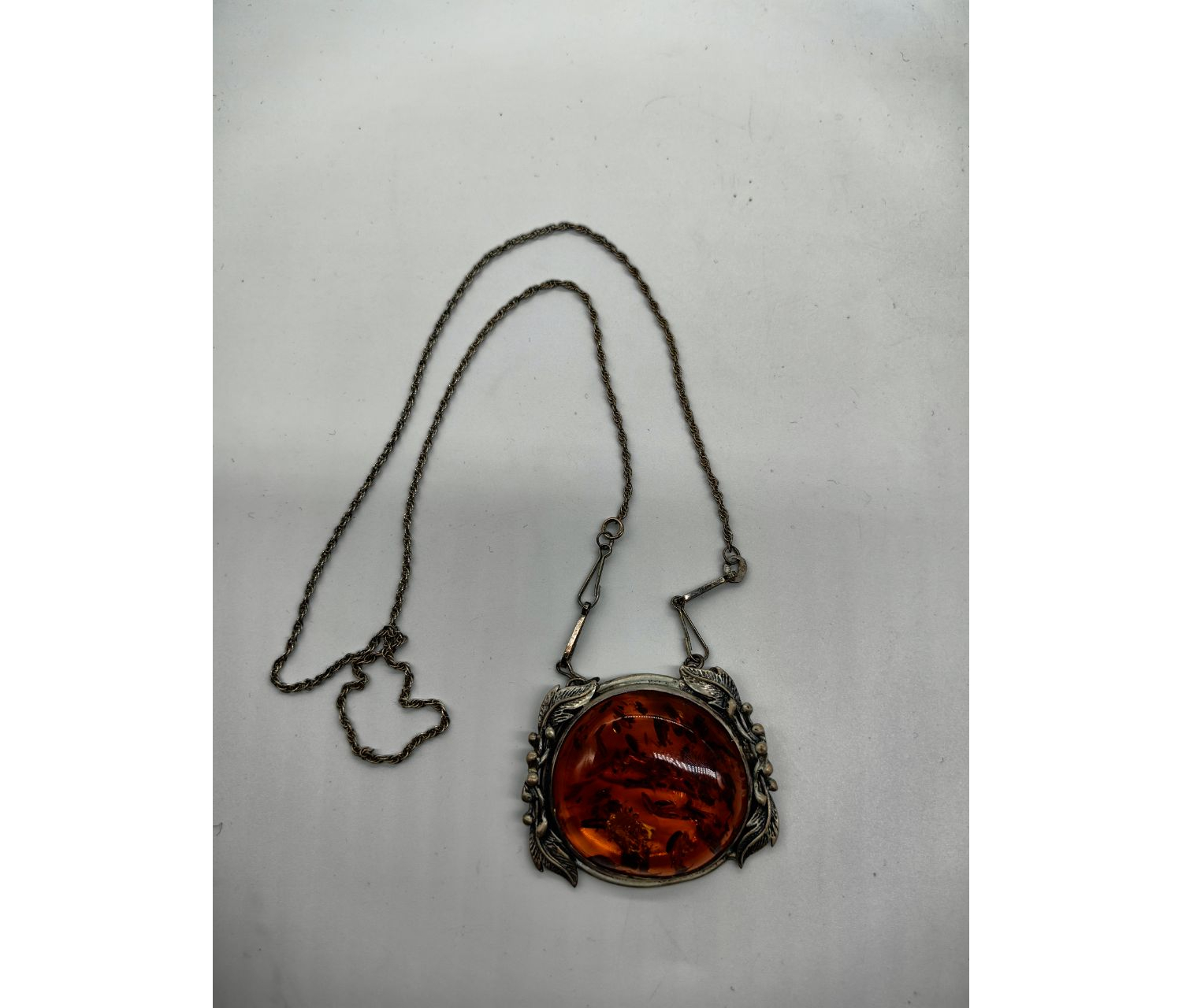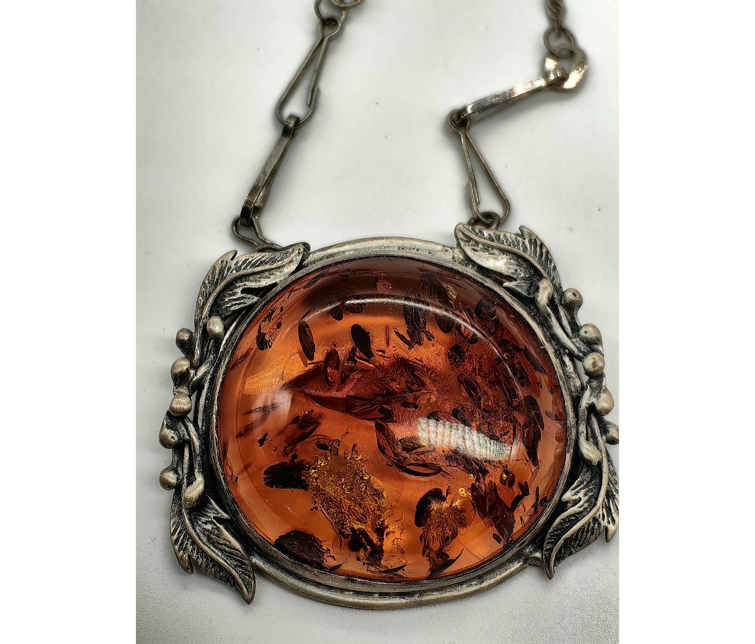 - Винтажная янтарная подвеска в серебре с цепочкой.