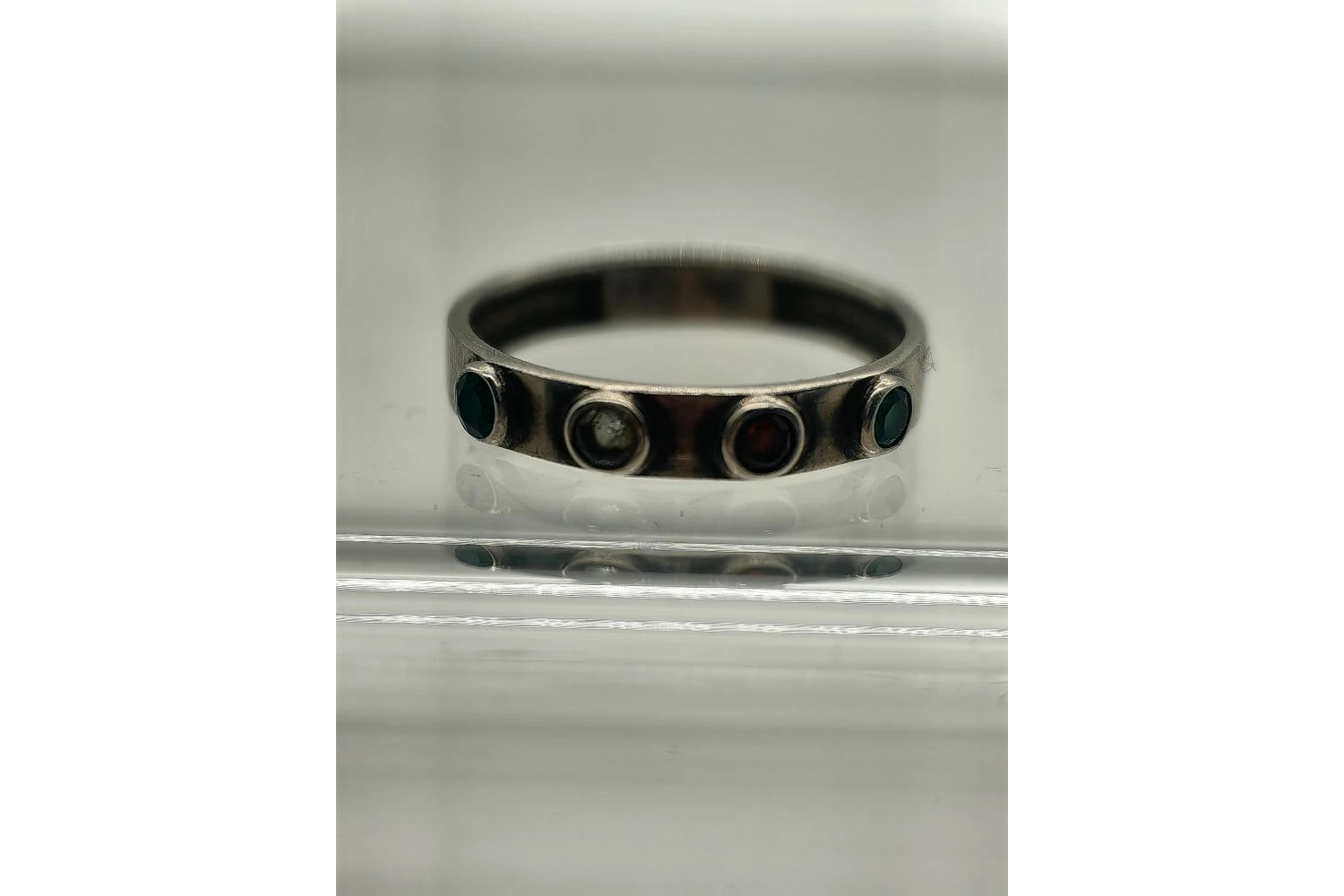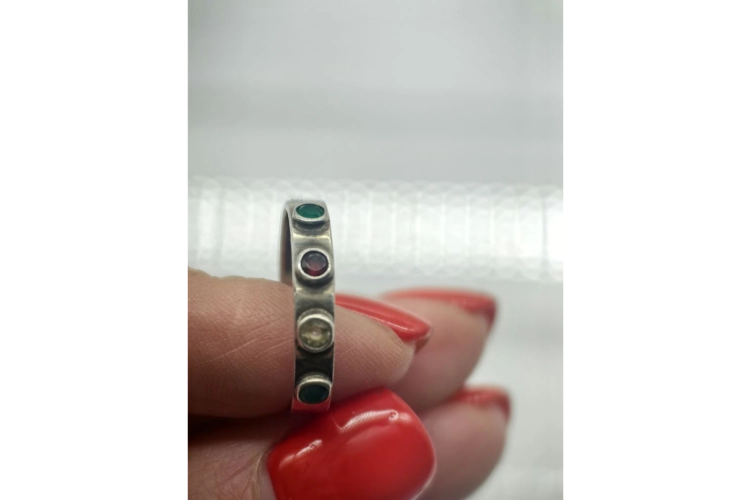 - Винтажное серебряное кольцо с разноцветными камнями.