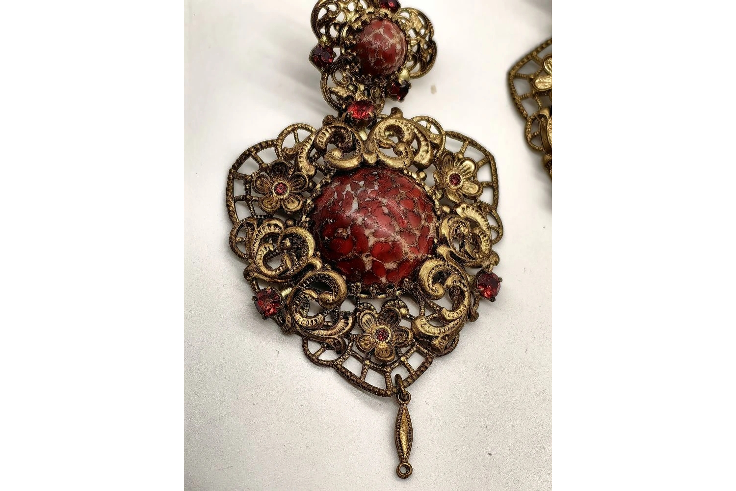 Эффектные винтажные серьги из Чехословакии — яркий образец бижутерии второй половины XX века. Сочетание латуни и пекинского стекла создаёт выразительный акцент, который добавит ретро‑шарма любому образу. Модель подойдёт для создания ансамблей в стиле бохо, винтаж или эклектика.