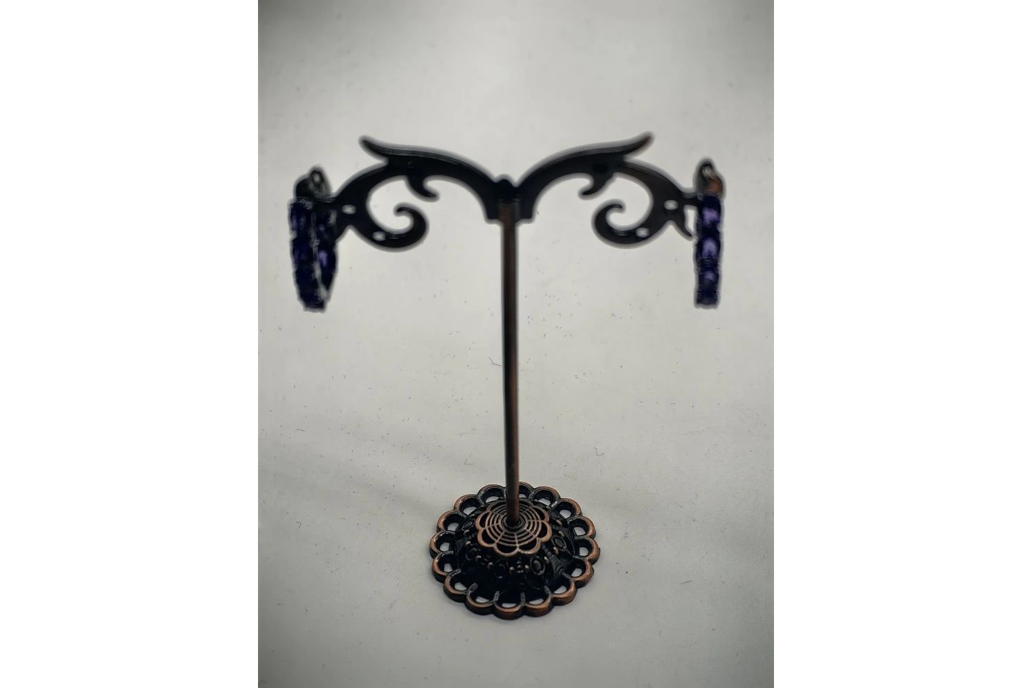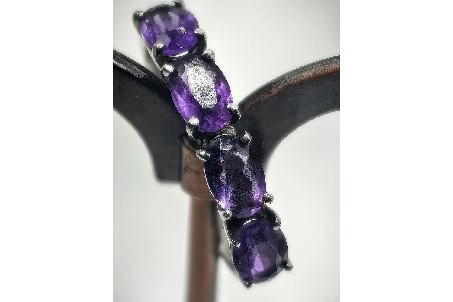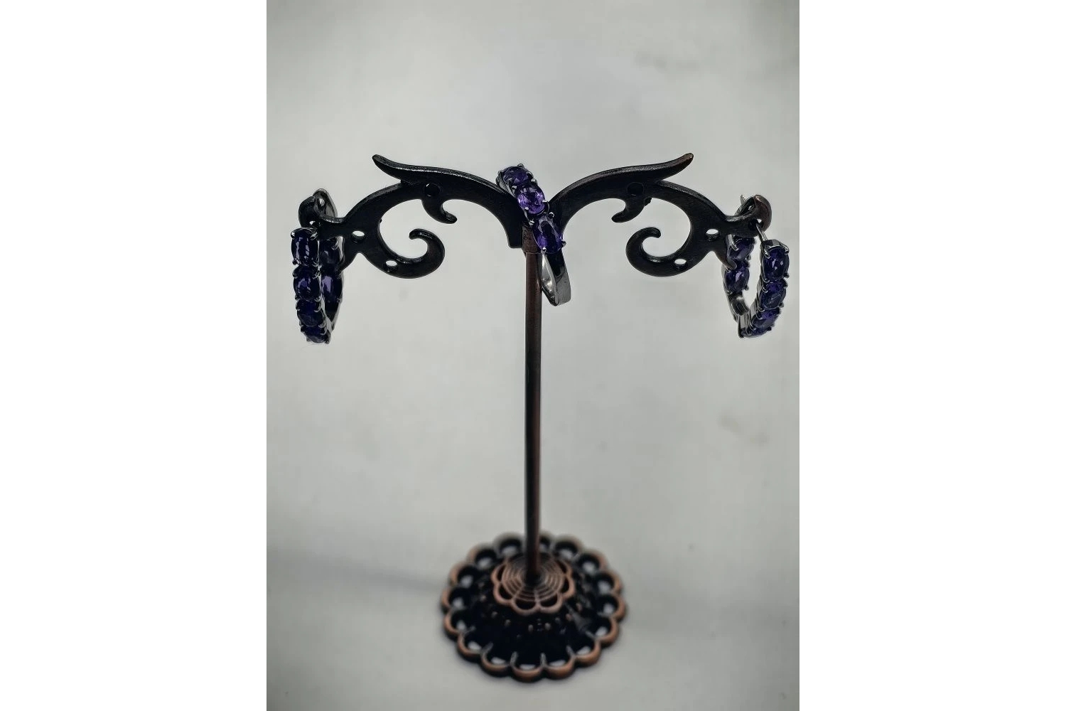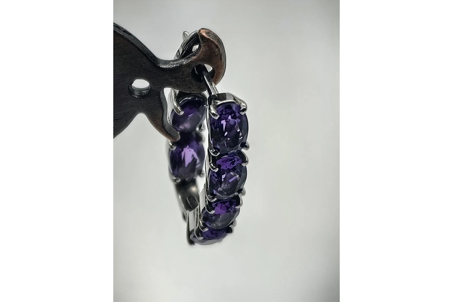 Камни: аметисты, расположенные не только на лицевой стороне, но и на внутренней — это создаёт эффект объёмности и дополнительный блеск при движении.