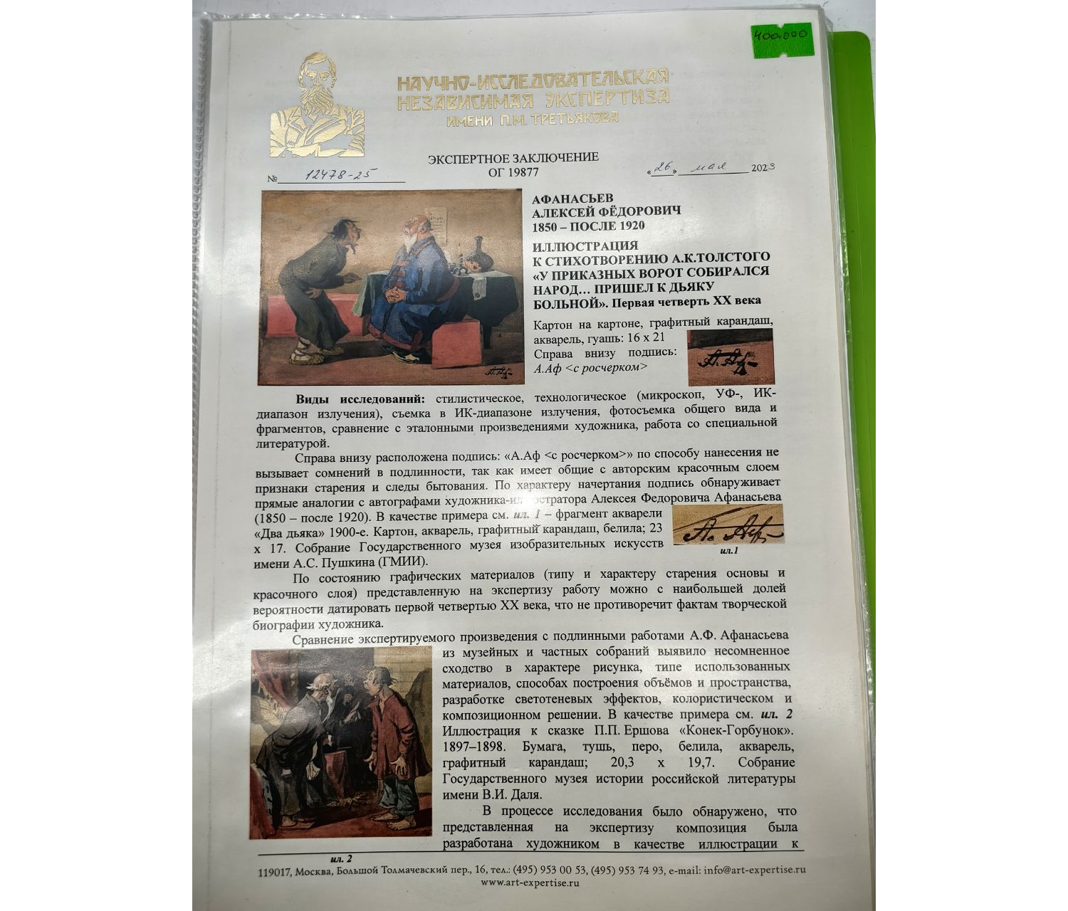 Сопровождается экспертным заключением о подлинности и датировке.